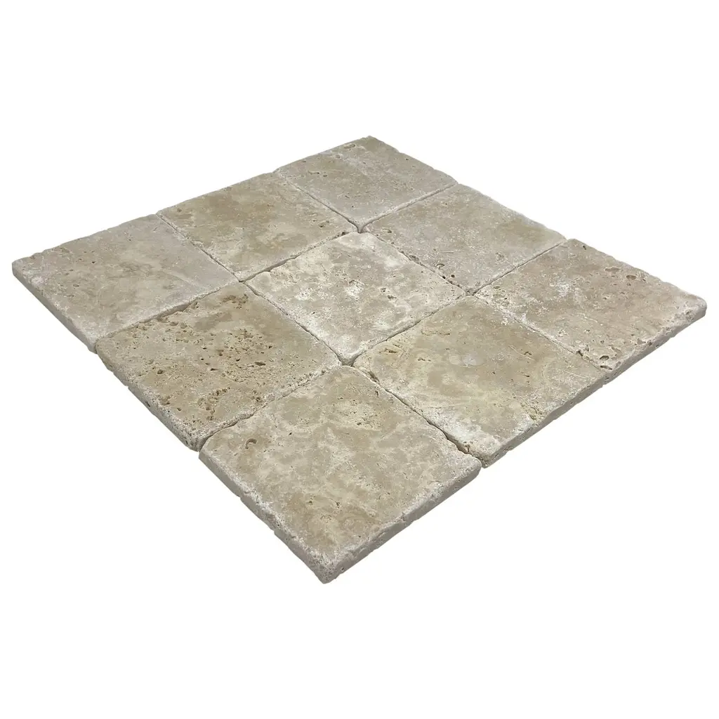 Ivory Travertine 4" X 4" Tumbled Tile - 1 Box (5.56 Sqft)