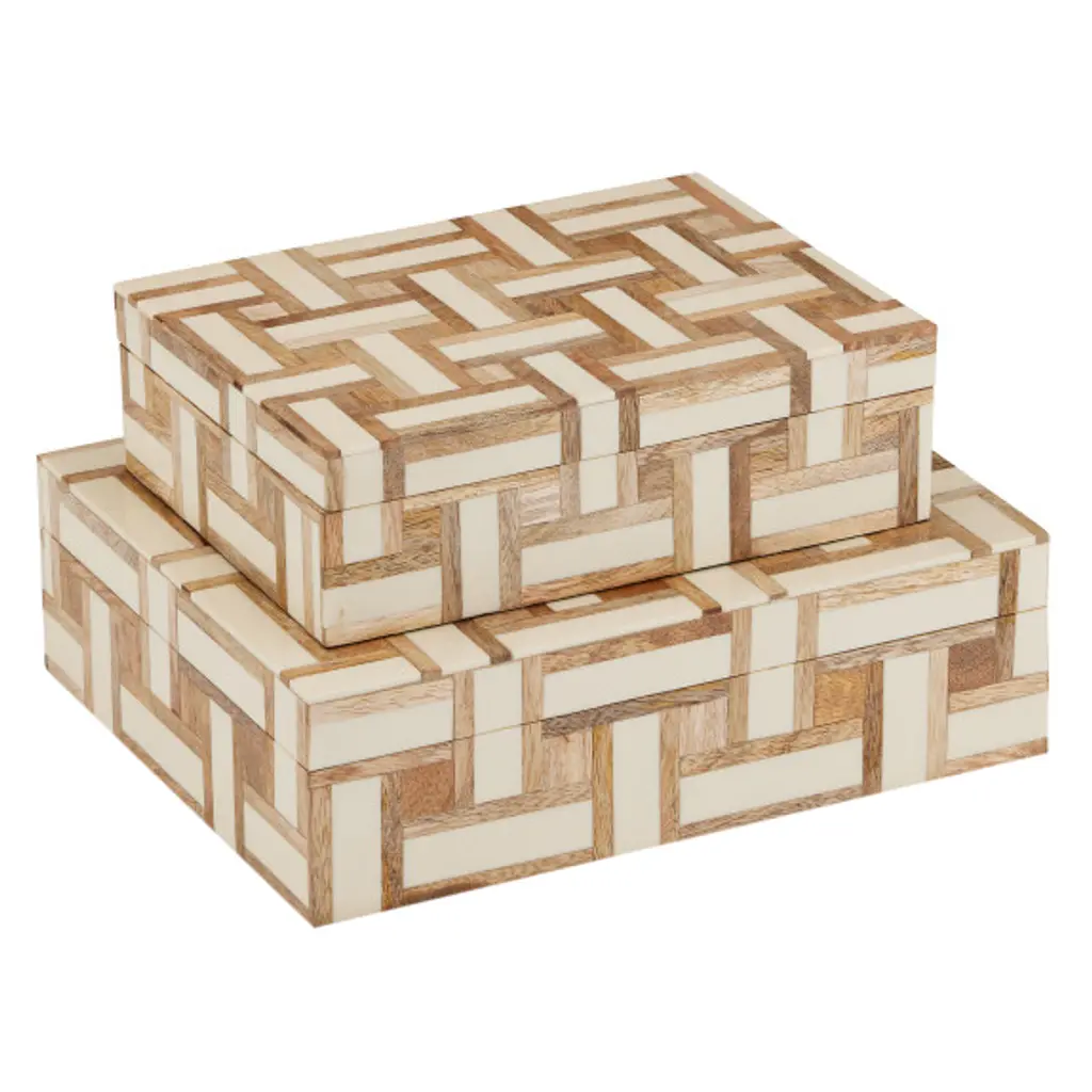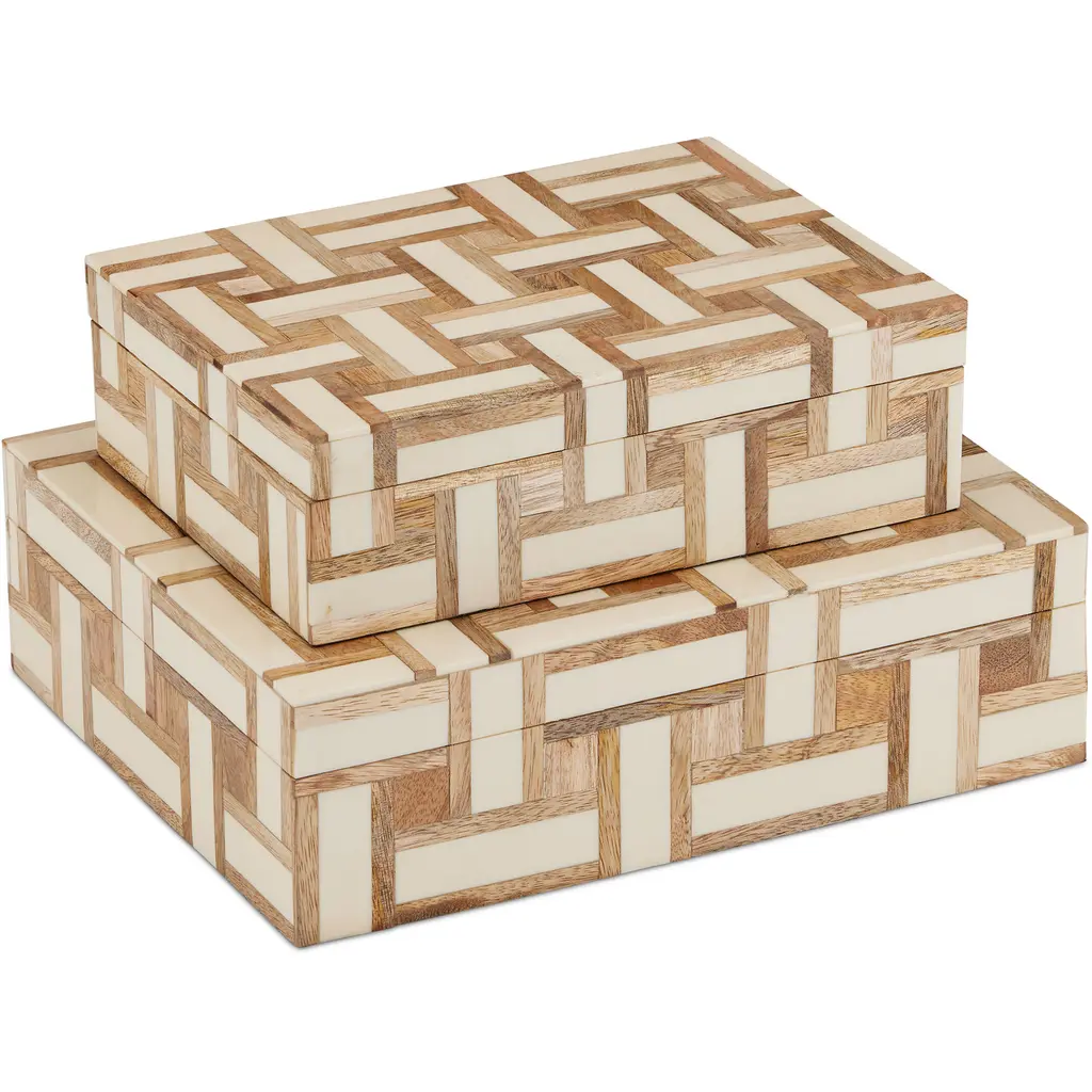 Jada Box Set Of Two (15"l X 9"w X 4"h, 13.5"l X 7"w X 3"h) Natural Banana Bark