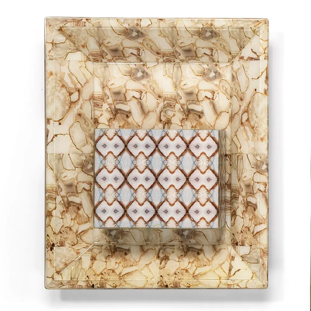 The design on this box is taken from photos of agate repeated in a way that gives the impression of looking through a kaleidoscope. The hand applied gold leafing adds another layer to create this incredible finish. Paper