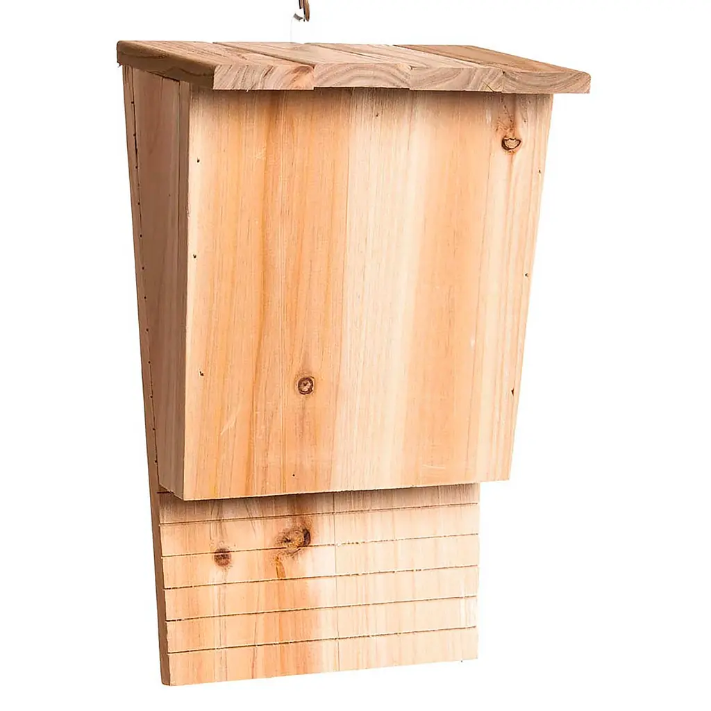 The entrance hole of the JCs Wildlife Barn Owl Nesting Box is elliptical in shape to provide protection from predators including raccoons and Great Horned Owls. Additionally, there is an interior divider separating the box into two compartments. Should a predator be able to reach into the box, they will be unable to reach the owl or owlets on the other side of the divider. The entrance hole is also placed in consideration of young owlets to prevent them from being pushed out of the box by others behind them – especially as they all seek to be fed first. Special "grip" grooves underneath the entrance hole also help the adult owl gain access into the box. A door on the end of the box allows for easy access to the interior - making clean out a simple and quick task. This also provides easy access to mount a wildlife camera in the box, so you can enjoy viewing your own young owlets during their growth process. Our previous nesting box design has proven very successful in attracting and providing homes to thousands of owls. Ranchers, farmers, and vineyards have found these useful for their own areas. This new, larger model sports larger overall dimensions to better accommodate larger broods. Nesting Material: Although Barn Owls can and will find their own nesting material, a bag of pine shavings is included with your Barn Owl Nesting Box. Scattering some on the floor of the box when mounting will make the Box more appealing to the owl. If you need to replace the nesting material, pine shavings are the safest option.This nesting box also comes with included stainless steel mounting screws for easy installation of our newly designed mounting system. Two mounting strips will also come attached to your barn owl box, along with a separate mounting strip loose in the box to attach to your preferred mounting location.