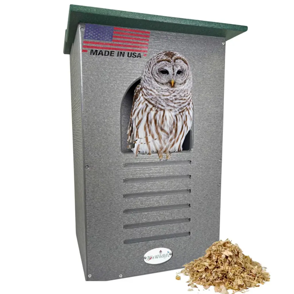 Jcs Wildlife Poly Barn Owl Nesting Box Large House Crafted In Usa - Made With Recycled Poly Lumber - Mounting Hardware And Pine Shavings Included -