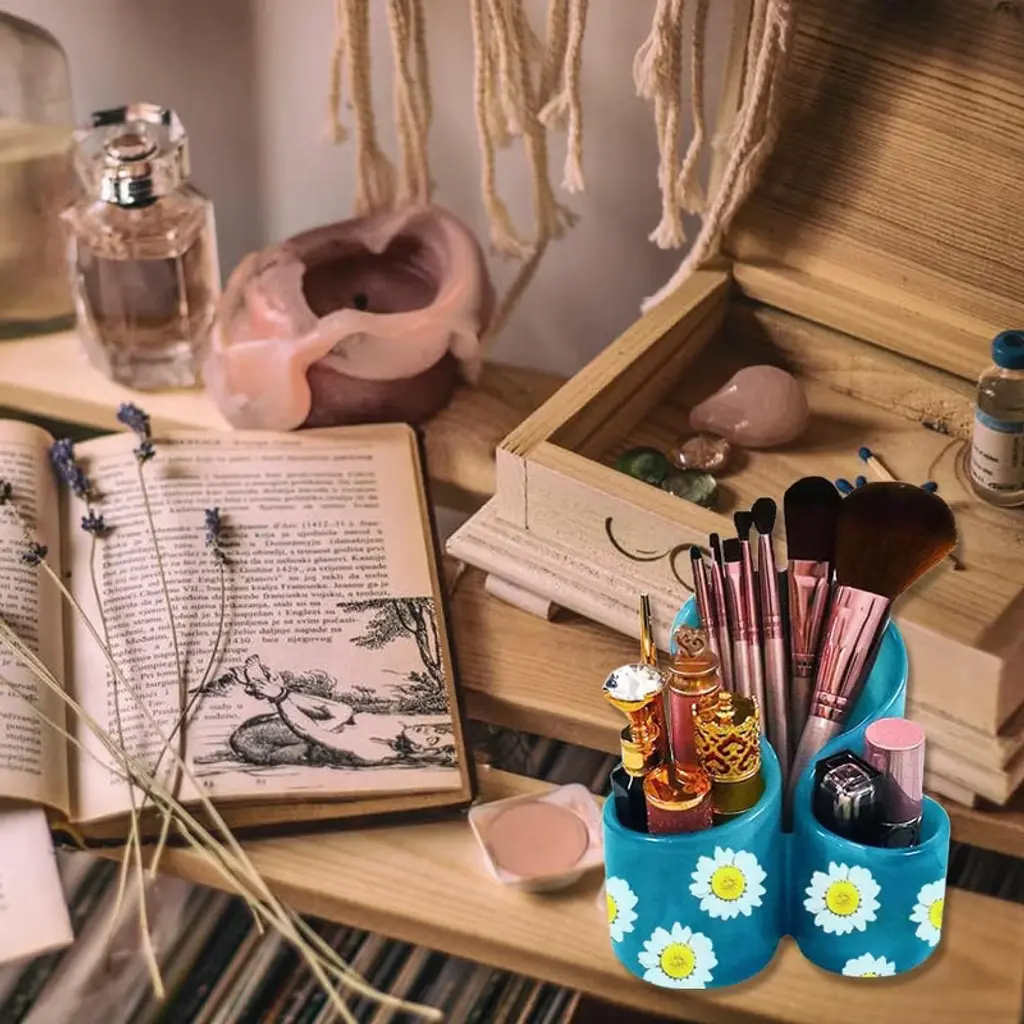 Jdiction Silicone Resin Mold: 3-slot Storage Box, Makeup Organizer, Pen Brush Holder For Resin Clay Crafts & Home Ornament