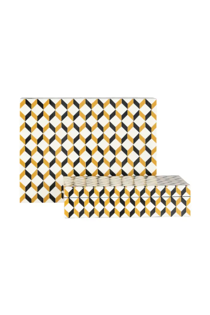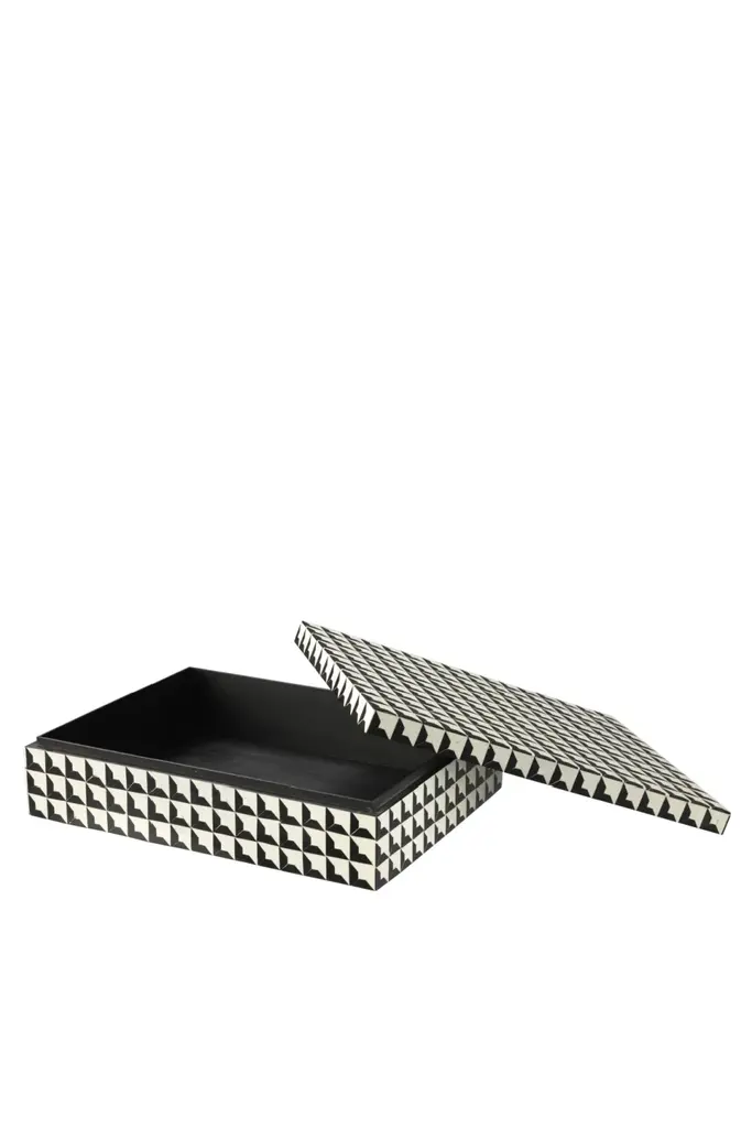The black & white resin inlay design of the Cabas L Box immediately attracts the eye with its symmetrical geometric pattern that creates an optical illusion. This decorative storage box is a stylish addition to your bedroom, lounge or dining room. The black & white resin inlay design of the Cabas L Box immediately attracts the eye with its symmetrical geometric pattern that creates an optical illusion. This decorative storage box is a stylish addition to your bedroom, lounge or dining room.
