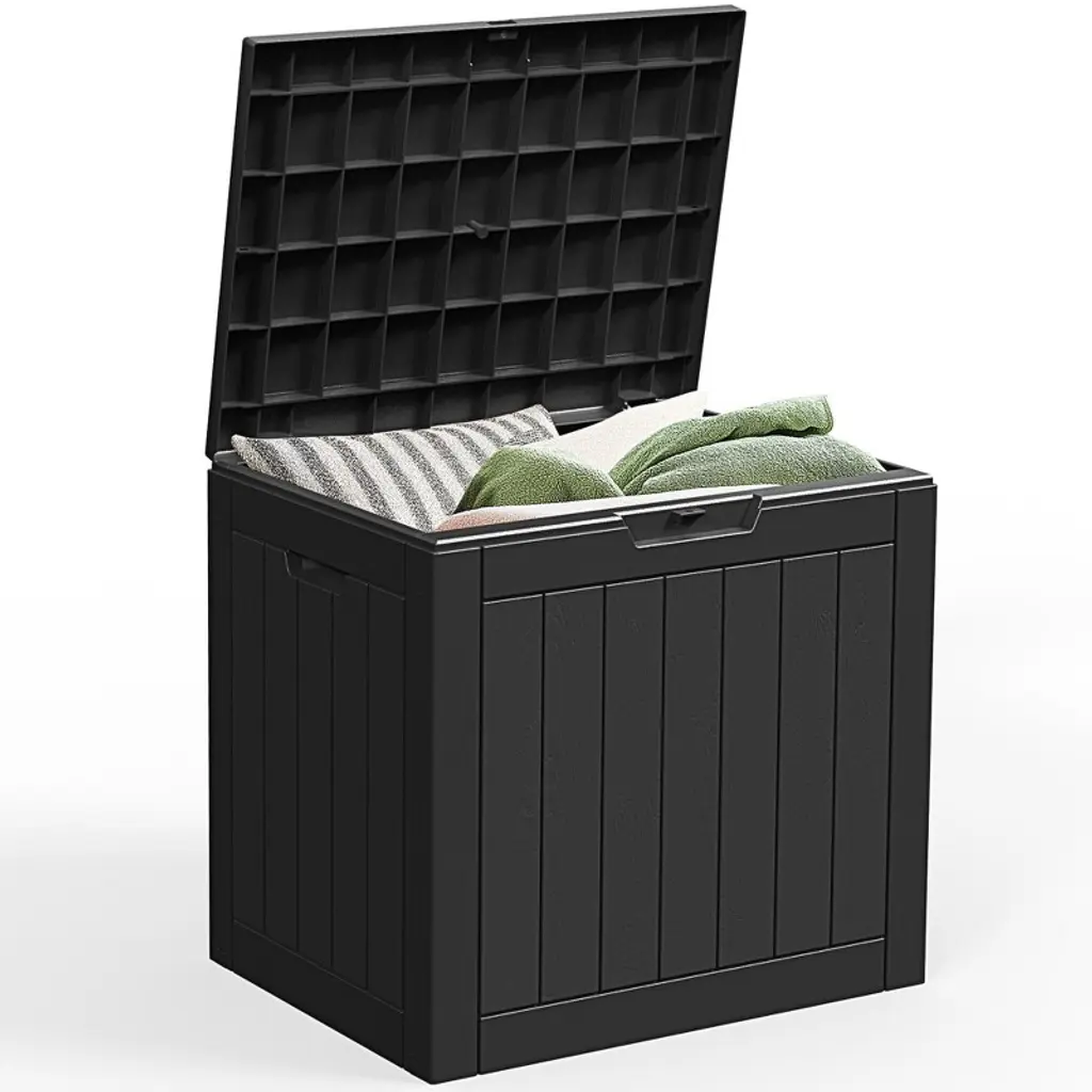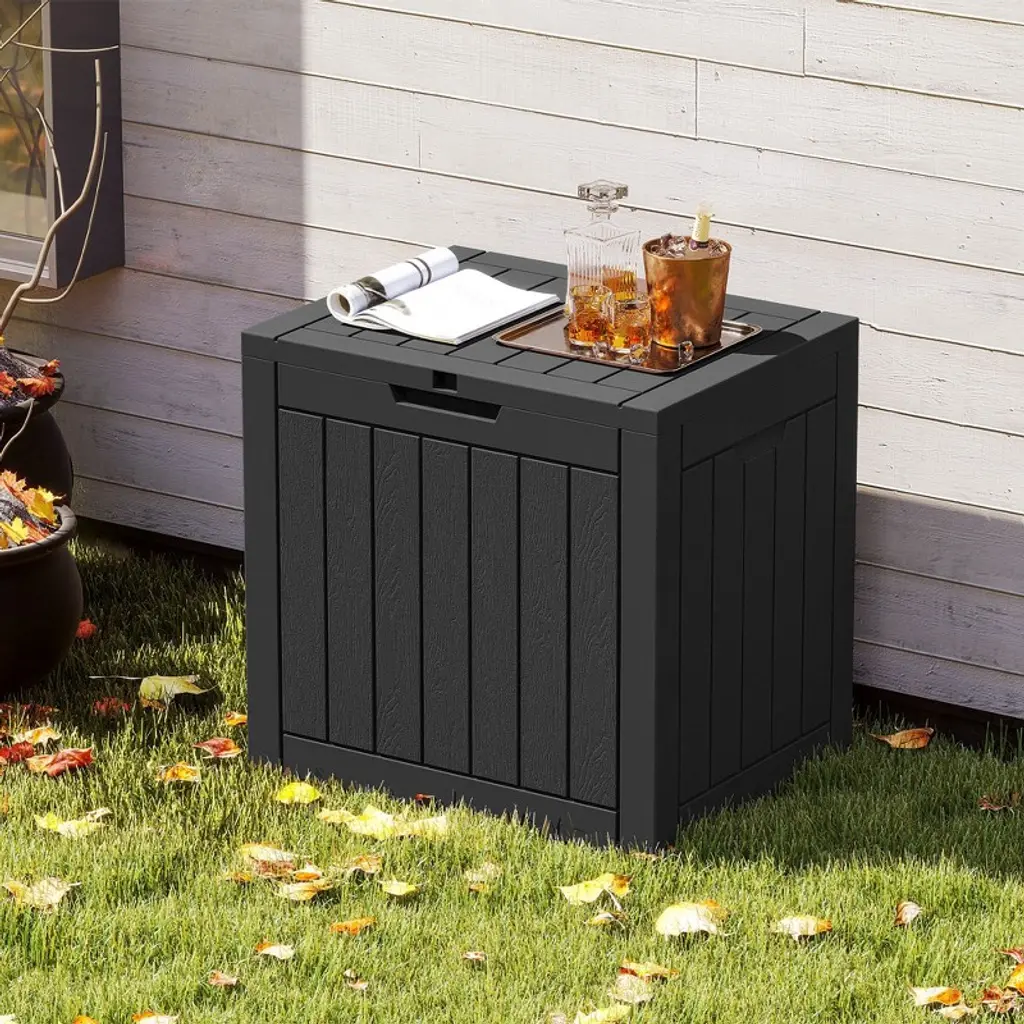 Introducing our versatile and spacious deck box designed to keep your backyard neat and organized with its generous 31- gallon capacity and dimensions of 22. 1 x17. 1 x20. 9Thisweatherproofsolutionisperfectforstoringtoolsfurniture and other outdoor items Crafted from environmentally friendly resin material it provides superior resistance to water corrosion and UV rays compared to traditional options Beyond storage this multi- purpose box can double as a seat or table supporting up to 165lb for added convenience Security is enhanced with lockable holes ensuring safe opening and closing Easy to assemble with included tools and instructions this stylish and functional deck box is an ideal addition to any outdoor space.