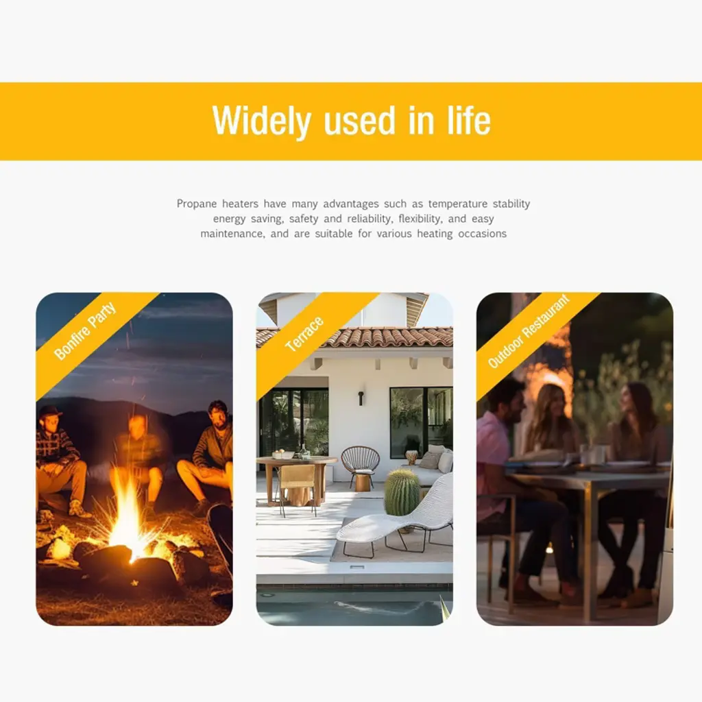 A propane heater is a highly practical device specifically designed to warm up spaces through the combustion of propane gas. It finds extensive application in diverse outdoor scenarios like construction sites, where workers need to stay warm during chilly work periods; camping trips, ensuring a cozy environment amidst the wilderness; and various outdoor events, enhancing the comfort of participants. The operational mechanism involves the ignition of propane gas, which subsequently heats either a set of coils or a ceramic component. The resultant heat is then evenly distributed into the surrounding space by means of natural convection. These propane heaters are not only conveniently portable, allowing for easy transportation and setup in different locations, but also highly efficient in converting propane into heat, thereby providing a rapid and reliable source of warmth.