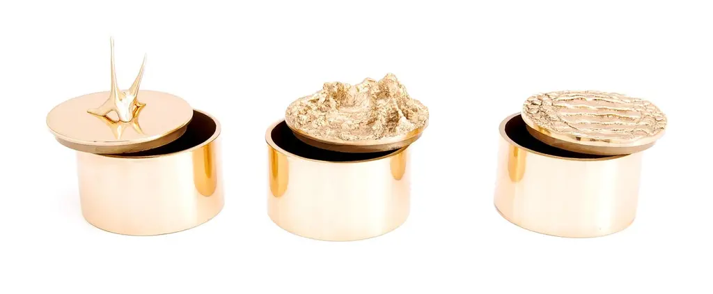 Joan small box by Fakasaka DesignDimensions: W 10 cm D 10 cm H 6.5 cm.Materials: polished bronze.Also available in black/brown bronze. FAKASAKA is a design company focused on production of high-end furniture, lighting, decorative objects, jewels, and accessories. Established in 2007, Fakasaka is the eponymous design company by Brazilian artist Fernando Akasaka distinguished by a penchant for producing intricate detailed cast bronze collectible design objects, furniture and jewelries. Fakasaka explores the contrast between the manmade and the natural through shapes and finishes that create a clear aesthetic. The constant challenge to balance elements is met with an outcome that is a striking assortment of bronze furniture and objects in oxidised and polished finishes, accented with precious regional stones, granites and rich prehistoric reptilian motifs.