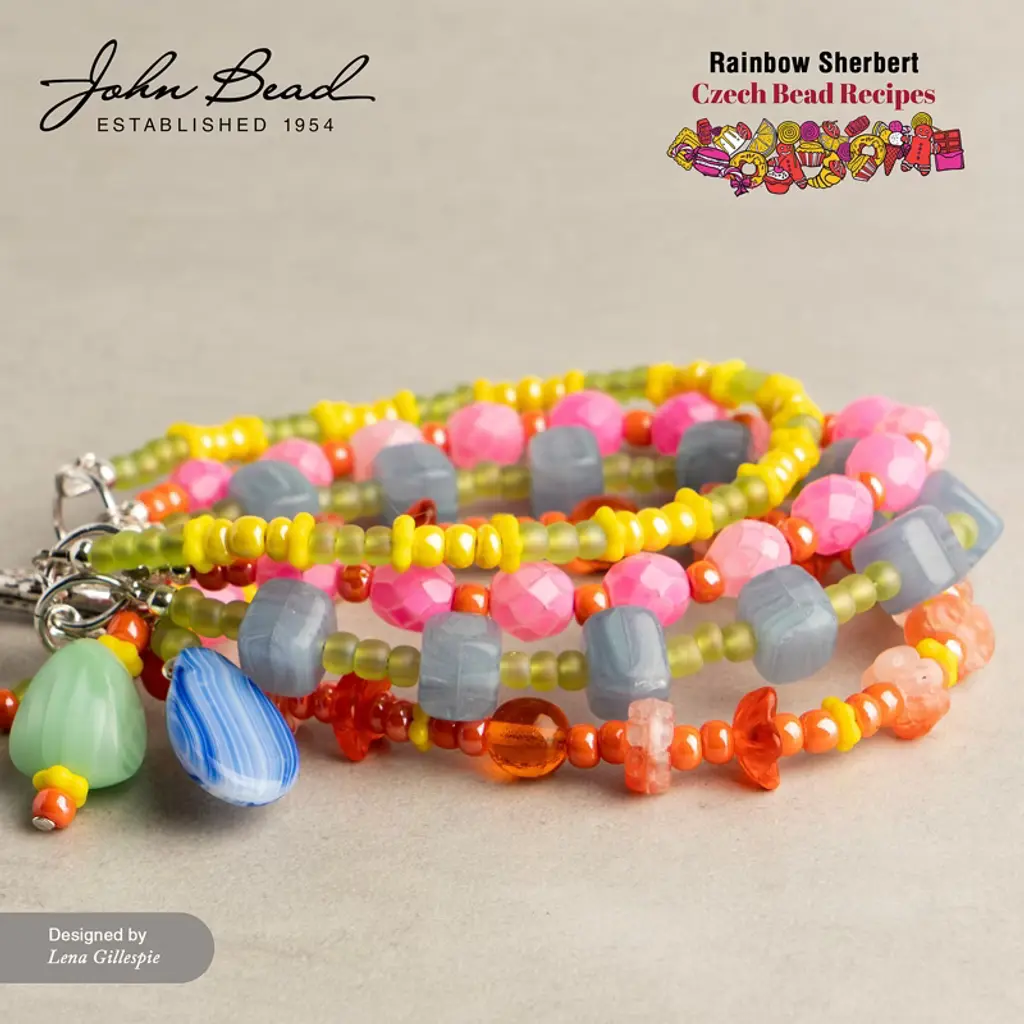 John Bead Recipe Box Mixed Glass Beads Rainbow Sherbert, 110g