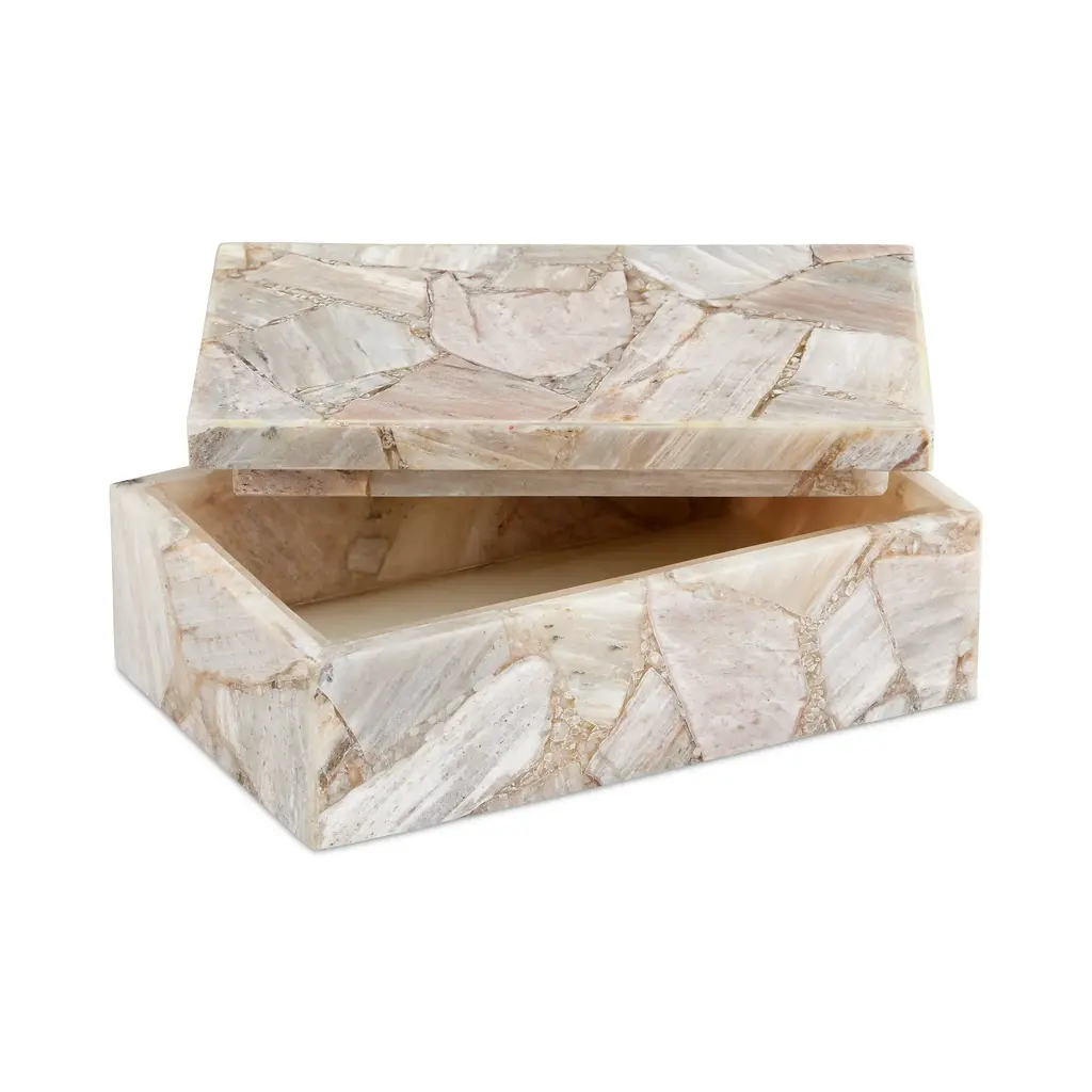 The Jossa Aventurine Box is made of banded aventurine, a material that looks strikingly similar to agate. The dynamic pattern is created when stone is mixed with composite in sheets. These are cut and the pieces are assembled into the flamboyant ivory decorative accessory. Designer Aimee Kurzner continues her material exploration in boxes with this set of contemporary accessories. Not that the surfaces will vary from piece to piece. Ships In 7-10 Business Days This image is for illustrative purposes only. The colors shown are accurate within the constraints of lighting, photography, and the color accuracy of your screen.