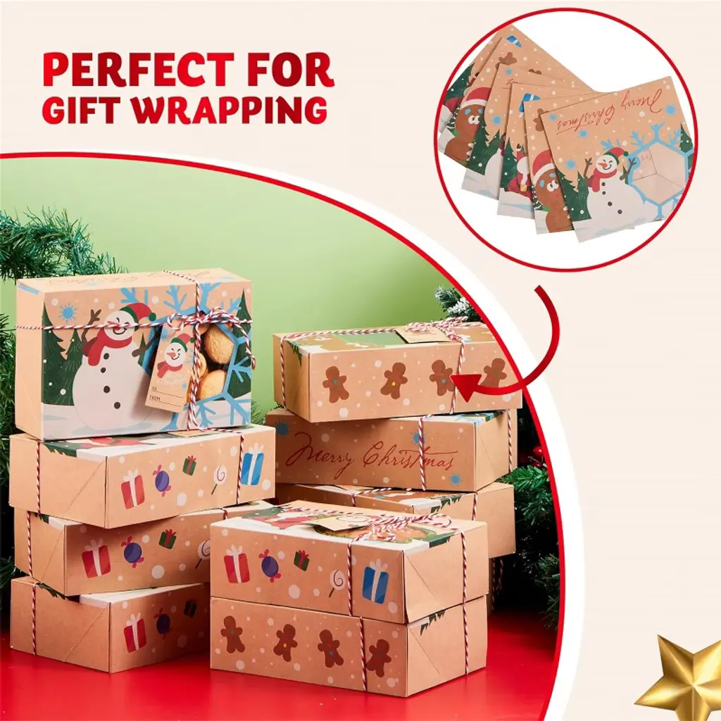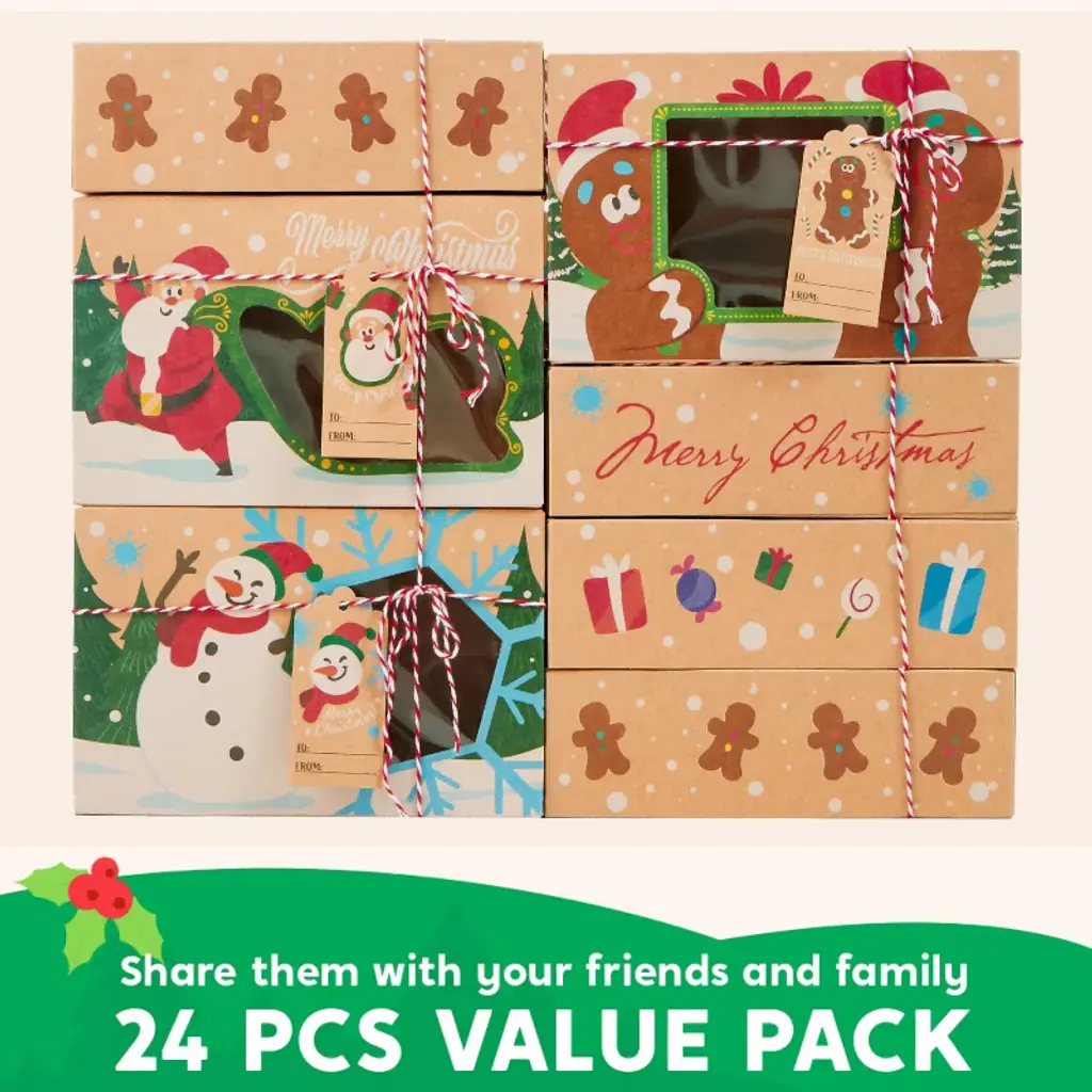 Joyfy 24 Pcs Christmas Cookie Gift Baking Box, Auto-popup Treat Boxes With Window And Tags, Xmas Treat Boxes Containers For Cookies & Holiday Baking