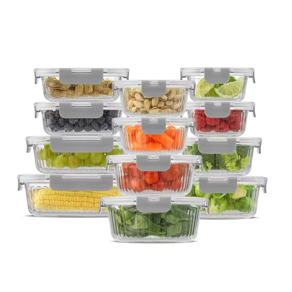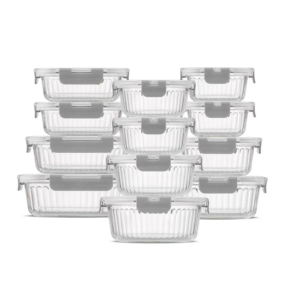 Joyjolt 24 Piece Fluted Glass Food Storage Containers With Leakproof Lids Set - Gray