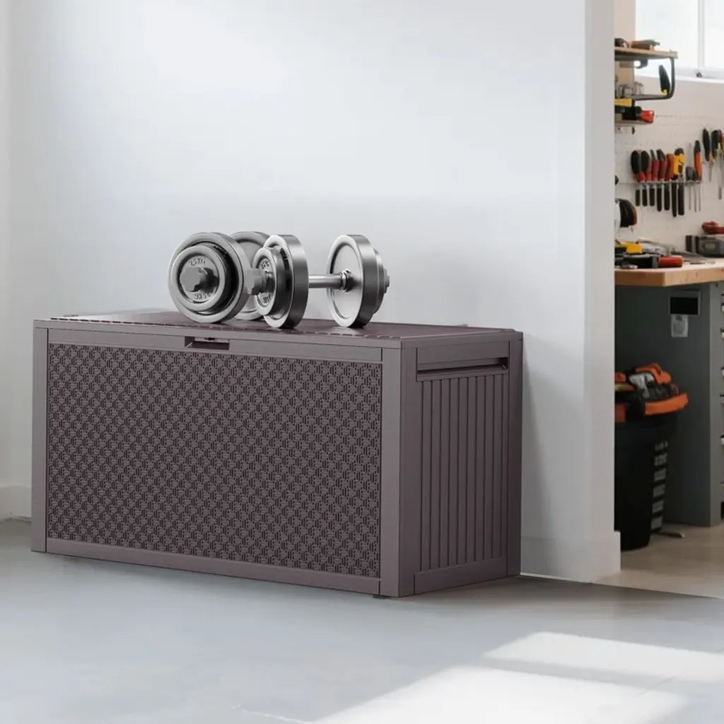 Keep your outdoor space tidy and organized with our 90-gallon gray plastic deck box, designed for durability and functionality. Made from high-quality injection-molded plastic, you can use this deck box in any position you want, whether outdoor or indoor, poolside, courtyard, or lawn, no matter where it is placed, it can make your space more tidy, simple, and fashionable appearance adding beauty.Importantly it is easy to assemble.