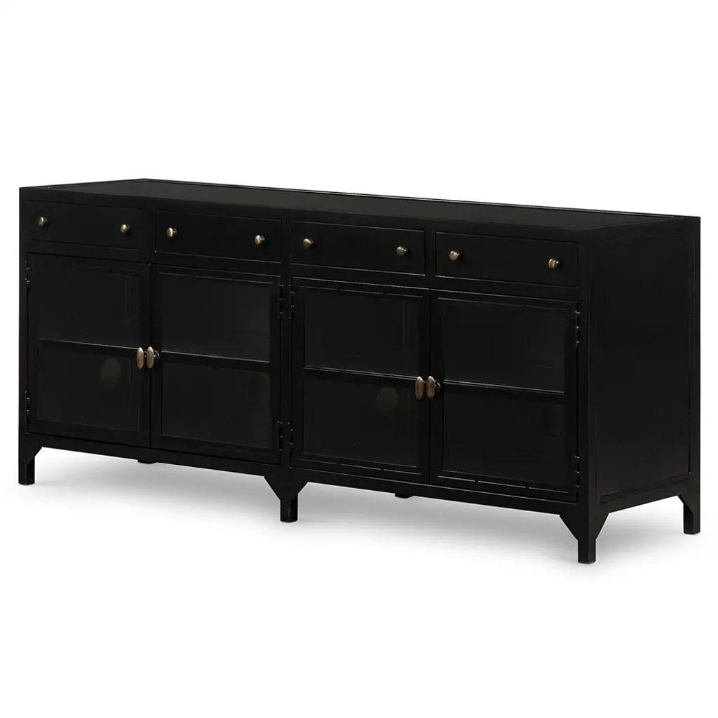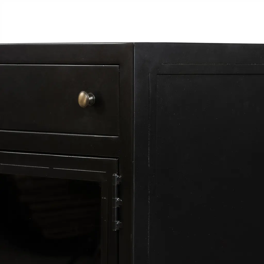 Katren Industrial Matte Black Metal Brass Box Media Cabinet