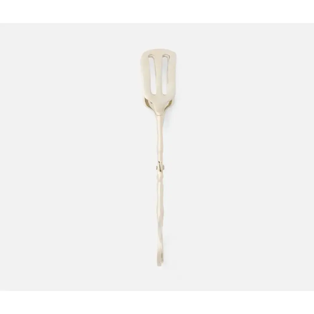 The Kayla serving tongs present classic, complementary finishes and textured details. A polished gold or nickel finish feels decadent to the touch. Blue Pheasant's products are handmade with care by artisans using natural materials. They are not mass produced, so variation between products should be expected, and this is why we love them! It is these irregularities that makes Blue Pheasant what it is—a special brand whose collections are distinctly handmade, full of charm and originality you’ll never find in machine-made products.