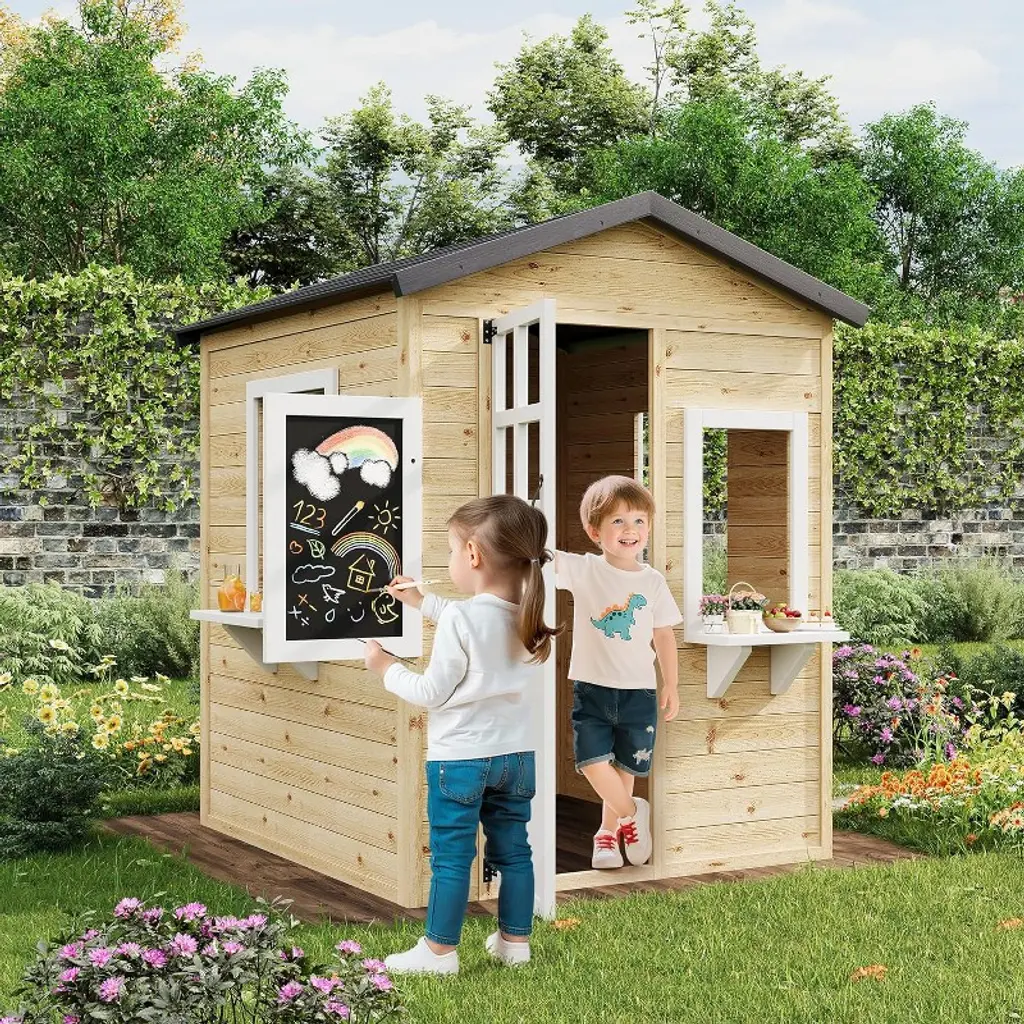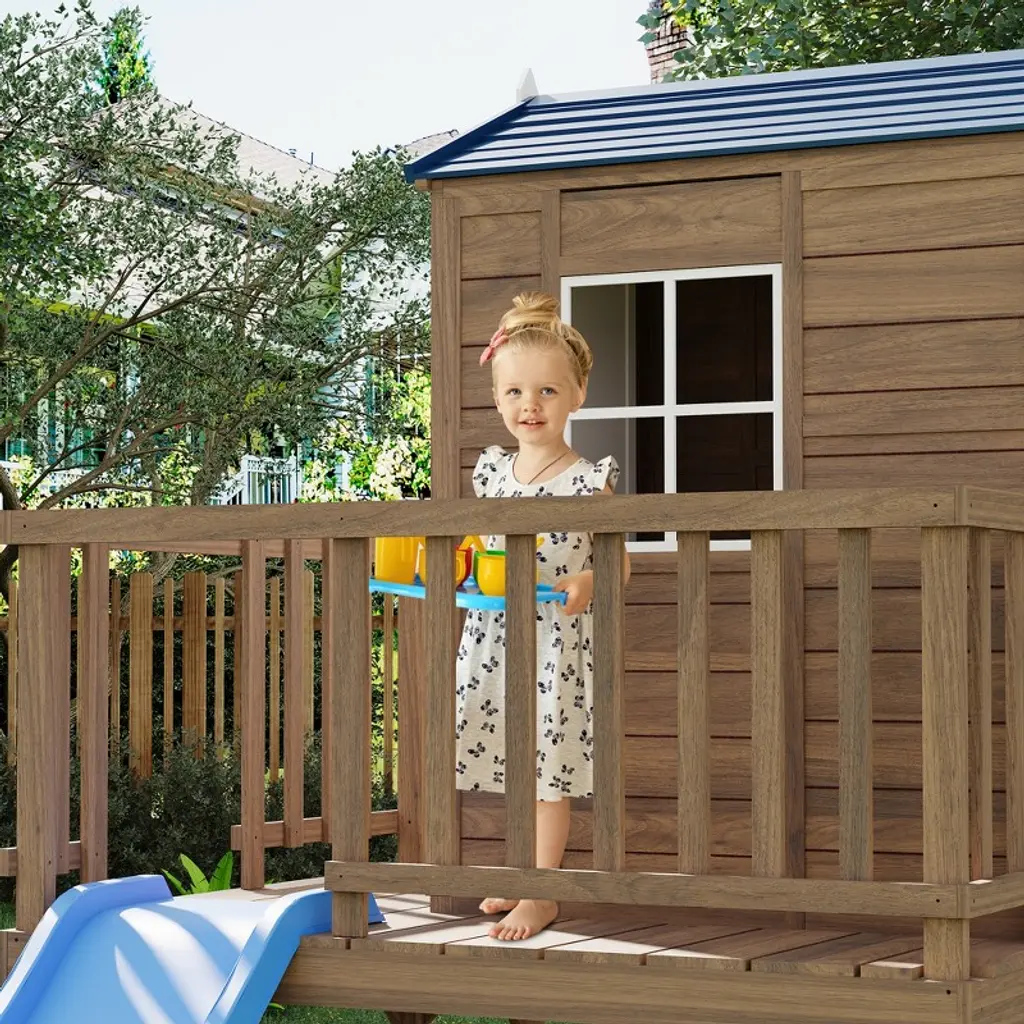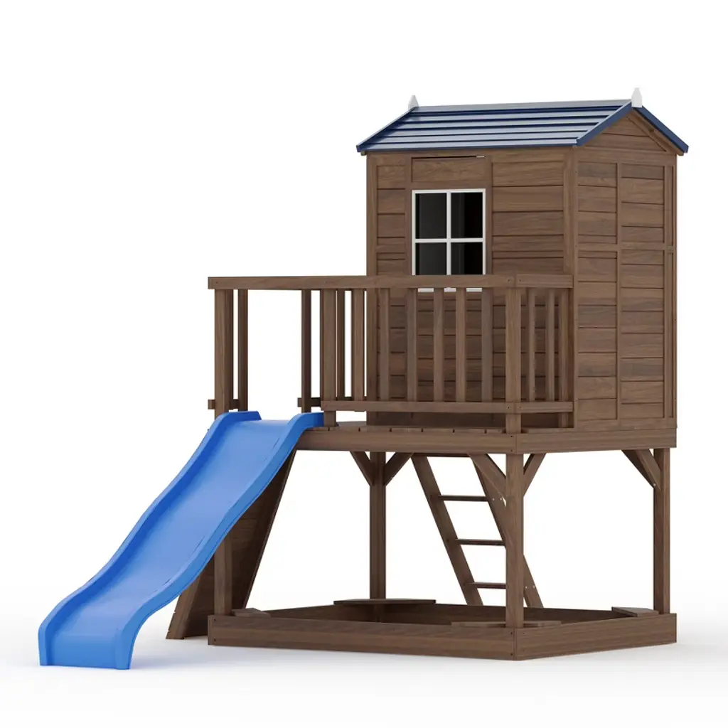 DURABLE & SAFE DESIGN - This kids clubhouse with slide is crafted from natural cedar wood, which is sturdy, durable, corrosion resistant, and sun-resistant. The wood surface is treated with outdoor water-based paint, making it suitable for use in harsh weather conditions. Its sturdy, thickened frame ensures excellent stability, providing a safe and secure play space for children aged 3-12SPACIOUS ENTERTAINMENT AREA - This kids playhouse with slide offers an outdoor play space for kids, with dimensions of 47.2x59.1.x89.4 inches, accommodating multiple children aged 3-12ELEVATED ADVENTURE - The elevated playhouse with slide with a wrap around deck adds a new level of fun while fitting into smaller backyardsSPEEDY WAVE SLIDE & SANDBOX COMBO - A high-rail 6-foot wave slide allows for swift, safe descents, promising endless fun every time.The base doubles as a spacious sandbox perfect for building sandcastles and sparking creativity. It’s double the fun in one compact designMULTI-FUNCTIONAL PLAY SCENES - Our elevated outdoor playhouse features many fun elements, including a climbing ladder, a playhouse, and a climbing wall. It not only fosters creativity but also helps improve children's social and emotional skills. This outdoor children's playhouse provides a place for kids to play outside, complete with a door and windows