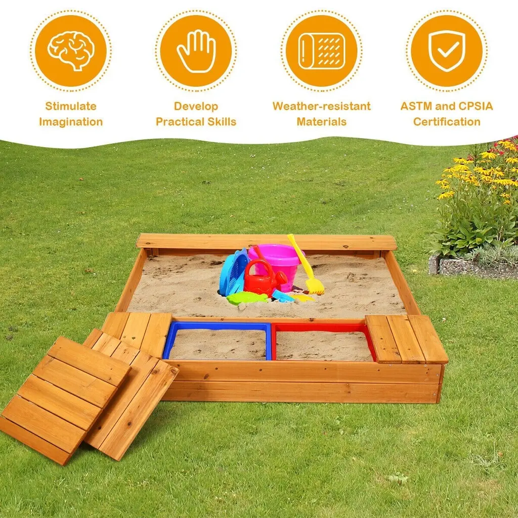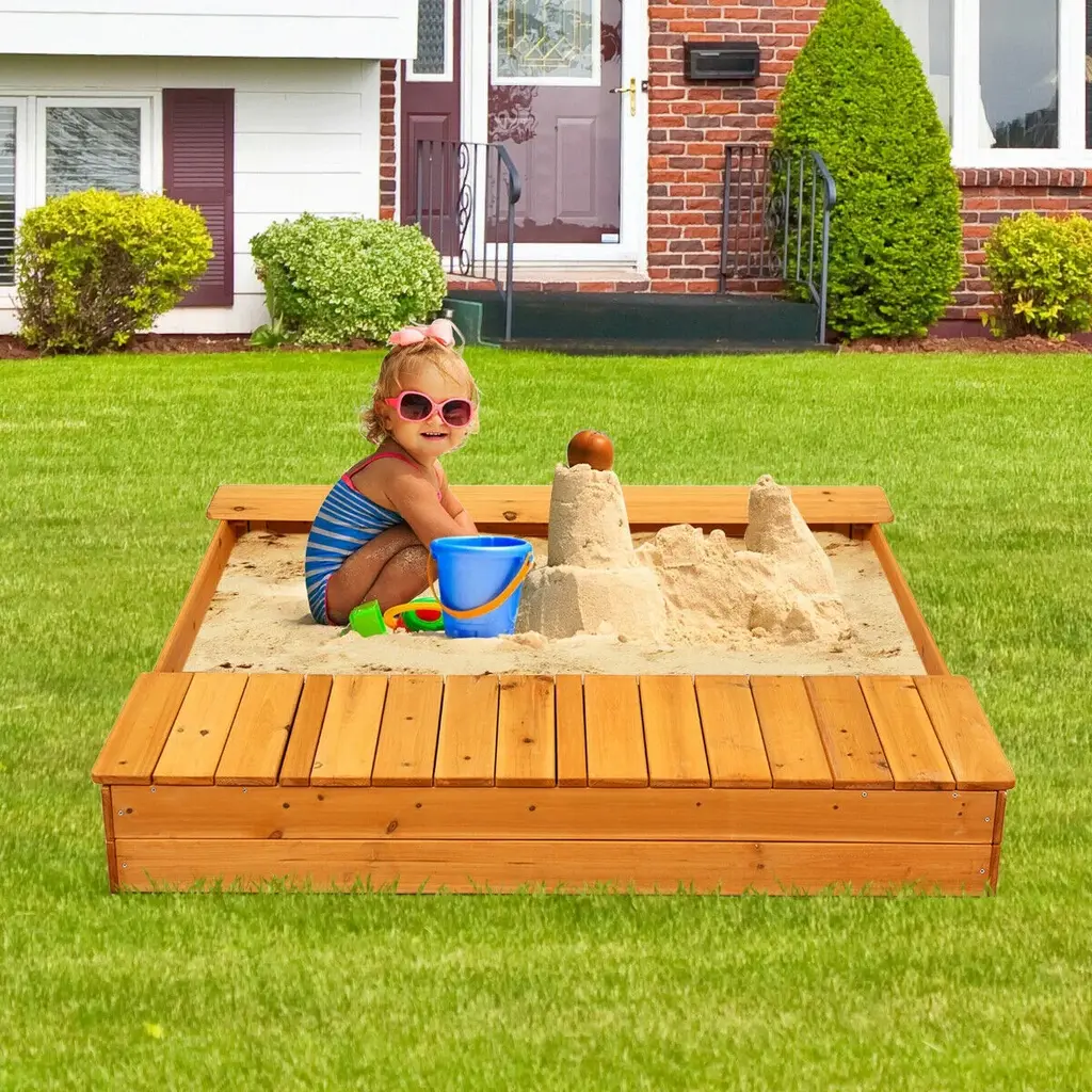 Kids Outdoor Playset Backyard Cedar Sandbox - Natural - 49" X 47.5" X 7" (L X W X H) - Natural