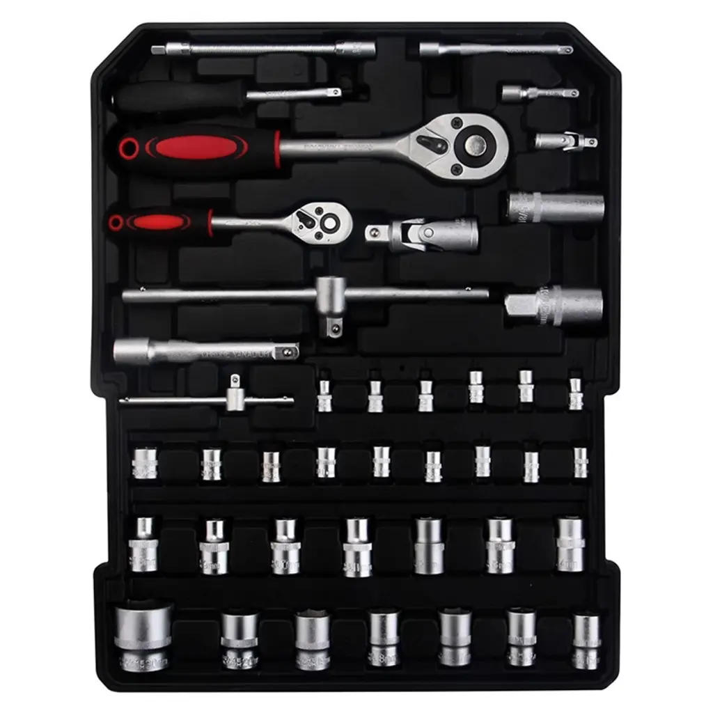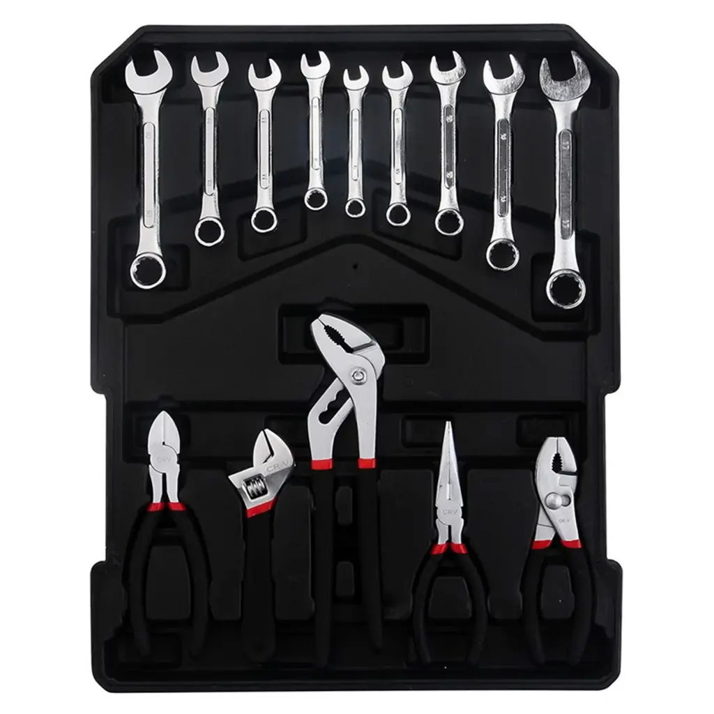 This 799-piece rolling tool set is the ultimate solution for homeowners, handymen, and DIYers. Housed in a durable wheeled toolbox with a convenient 4-layer drawer system, this kit includes an extensive range of tools for home repairs, car maintenance, furniture assembly, and gardening. Designed for portability and practicality, it features a secure locking system, integrated handle, and smooth-rolling wheels for effortless transport. From wrenches, sockets, pliers, and screwdrivers to precision tools, each item is neatly organized in the multi-tiered case, so you¡¯re always ready for your next task¡ªat home, in the garage, or on the go.
