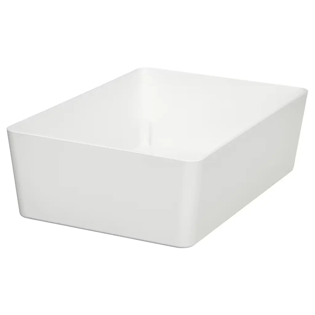 KUGGIS Box - white 7x10 ¼x3 ¼ ". The boxes and lids in the KUGGIS series are available in several colors and sizes – mix and match according to taste, space and need. Fits BILLY bookcase and other units with shelves which are at least 7⅛" deep. May be completed with KUGGIS lid 7⅛x10¼ in.
