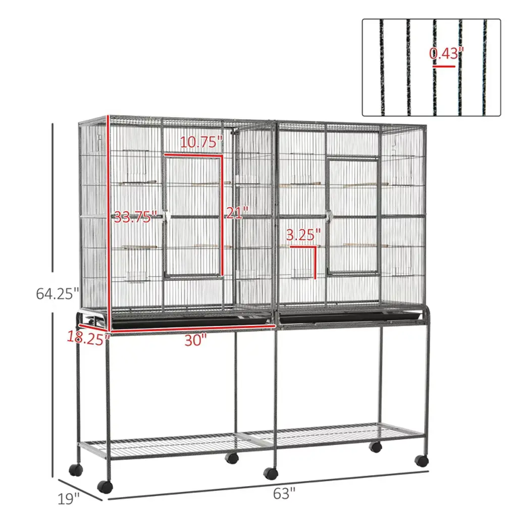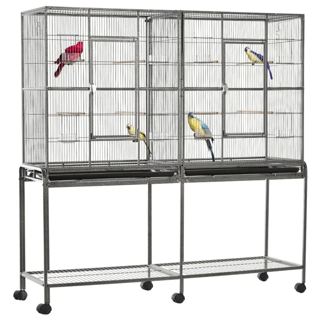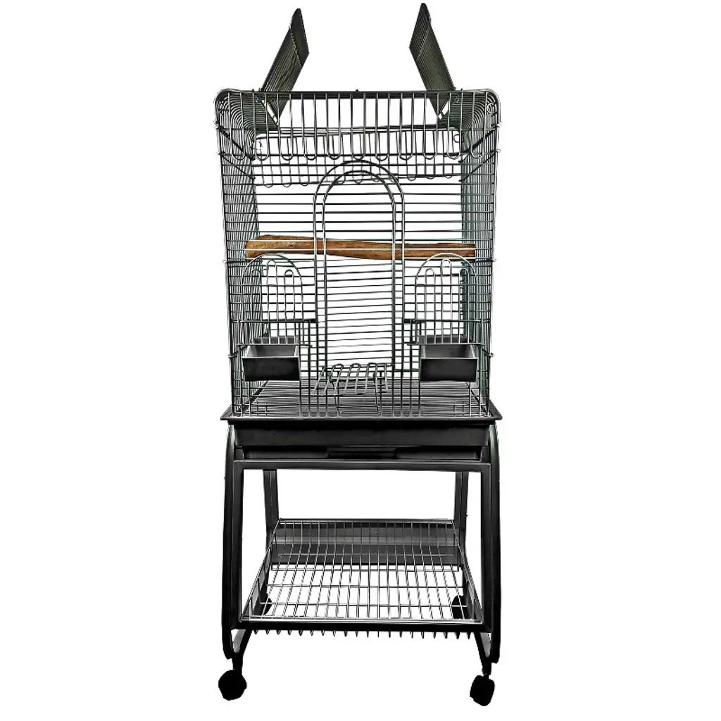 Kumasinova Double Rolling Metal Bird Cage Feeder With Detachable Rolling Stand,storage Shelf,wood Perch And Food Storage Container,black