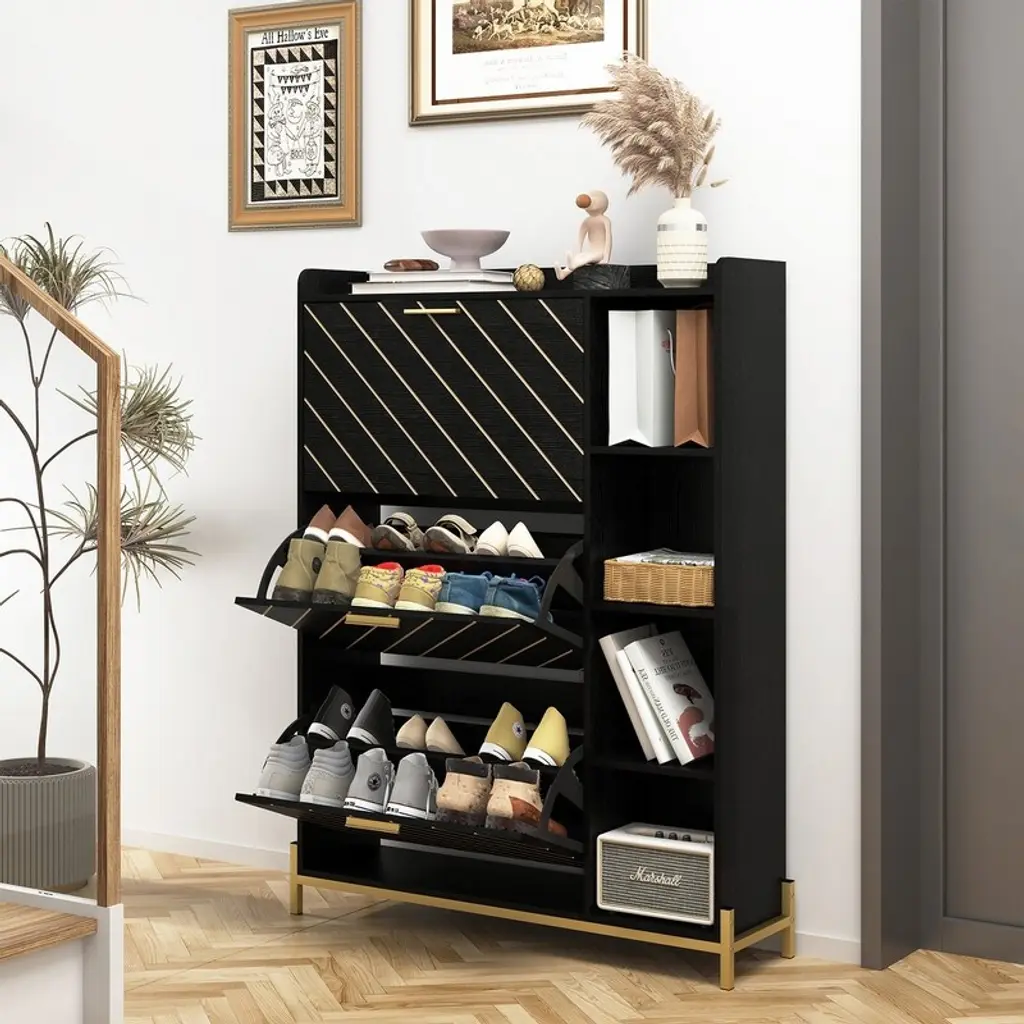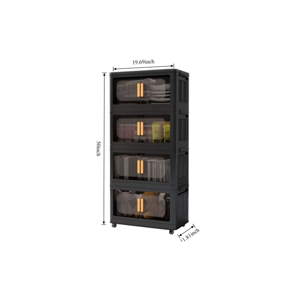 Kwpzqeb 4-tier Plastic Tall Storage Cabinet With Movable Wheels, Magnetic Doors, 20" Foldable Organizers And Storage For Bathroom, Living Room, Black