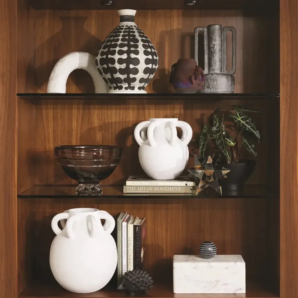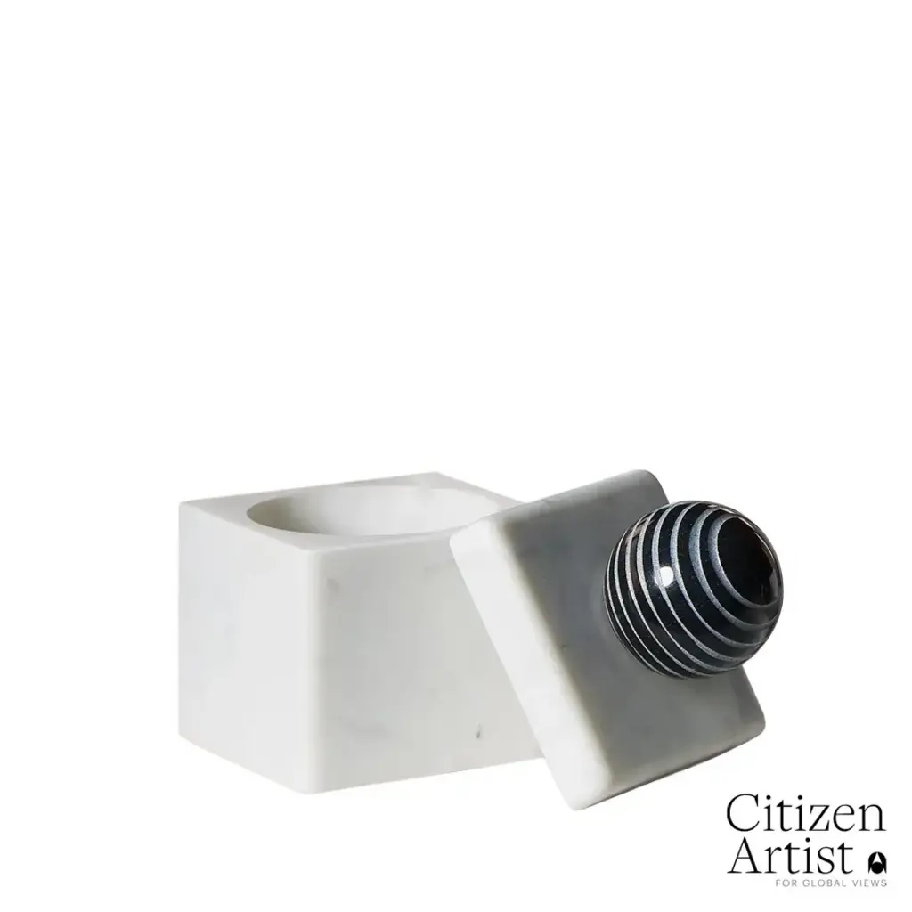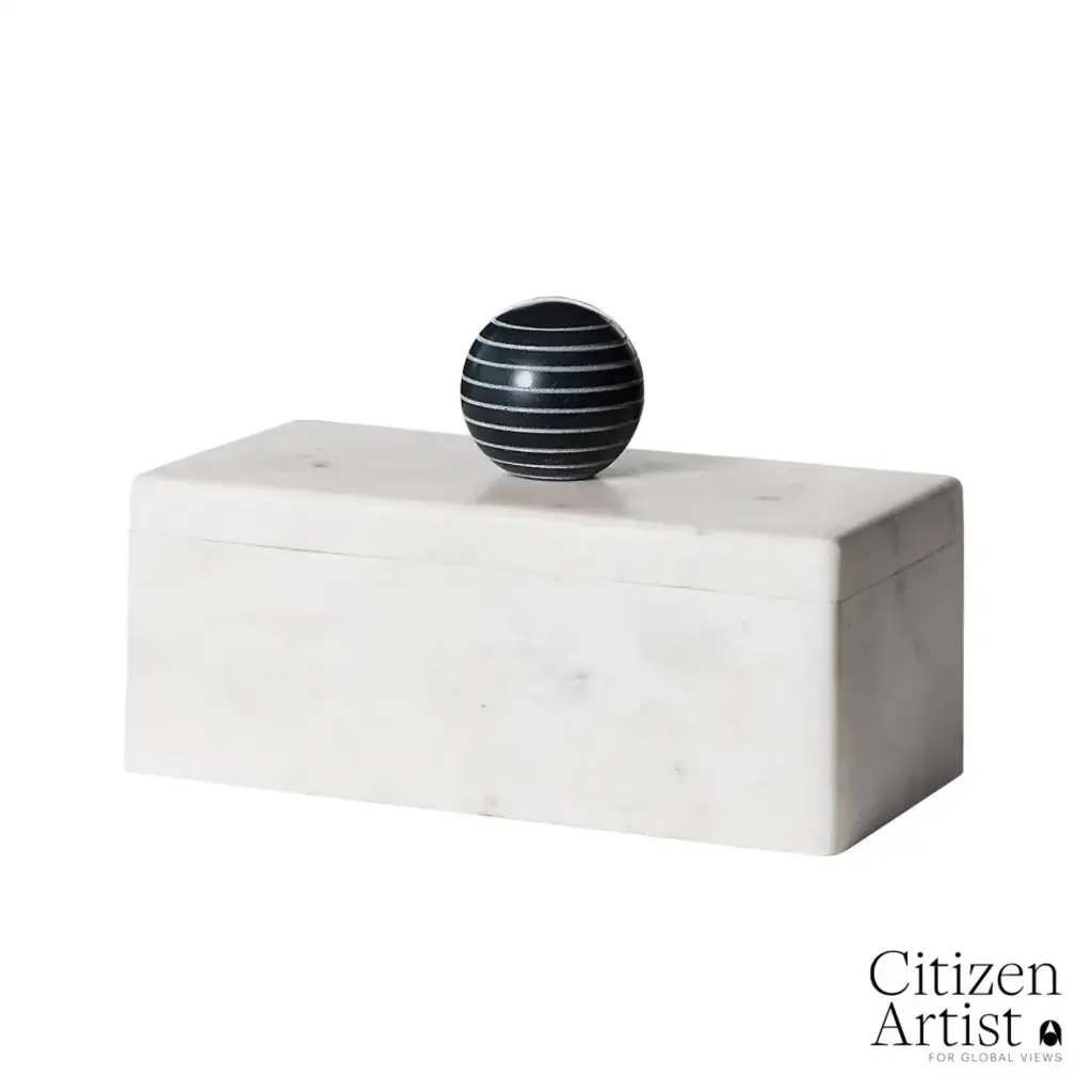 Carved from a solid piece of white marble with an etched black marble handle, La Boites elegant curves and bold proportions make it as visually arresting as it is functional. Available in three playful sizes. From a fashion forward perspective, Global Views offers accessories, furniture, statement lighting, and an assortment of rugs and mirrors to add beauty and joy to your home.