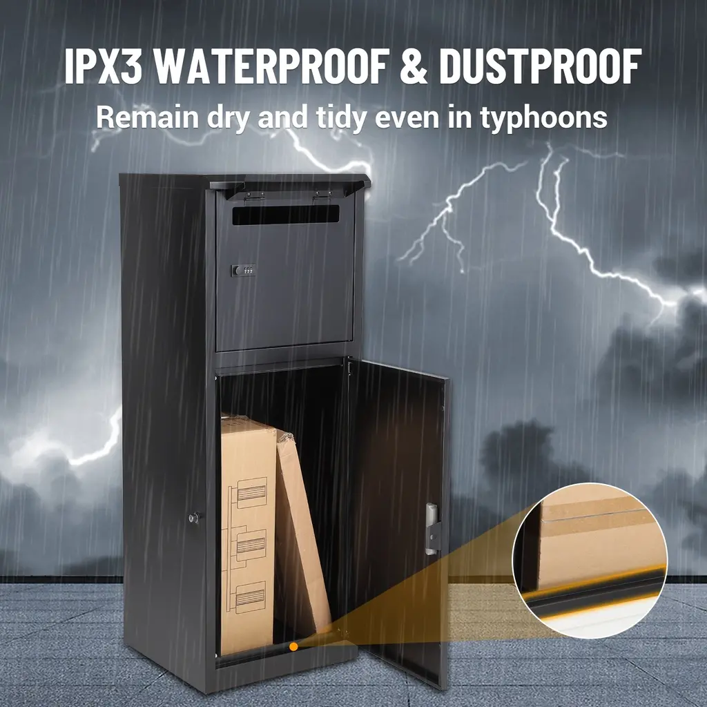 Large Package Delivery Drop Box, 16.1"x15.7"x43.5", Ipx3 Waterproof - Black