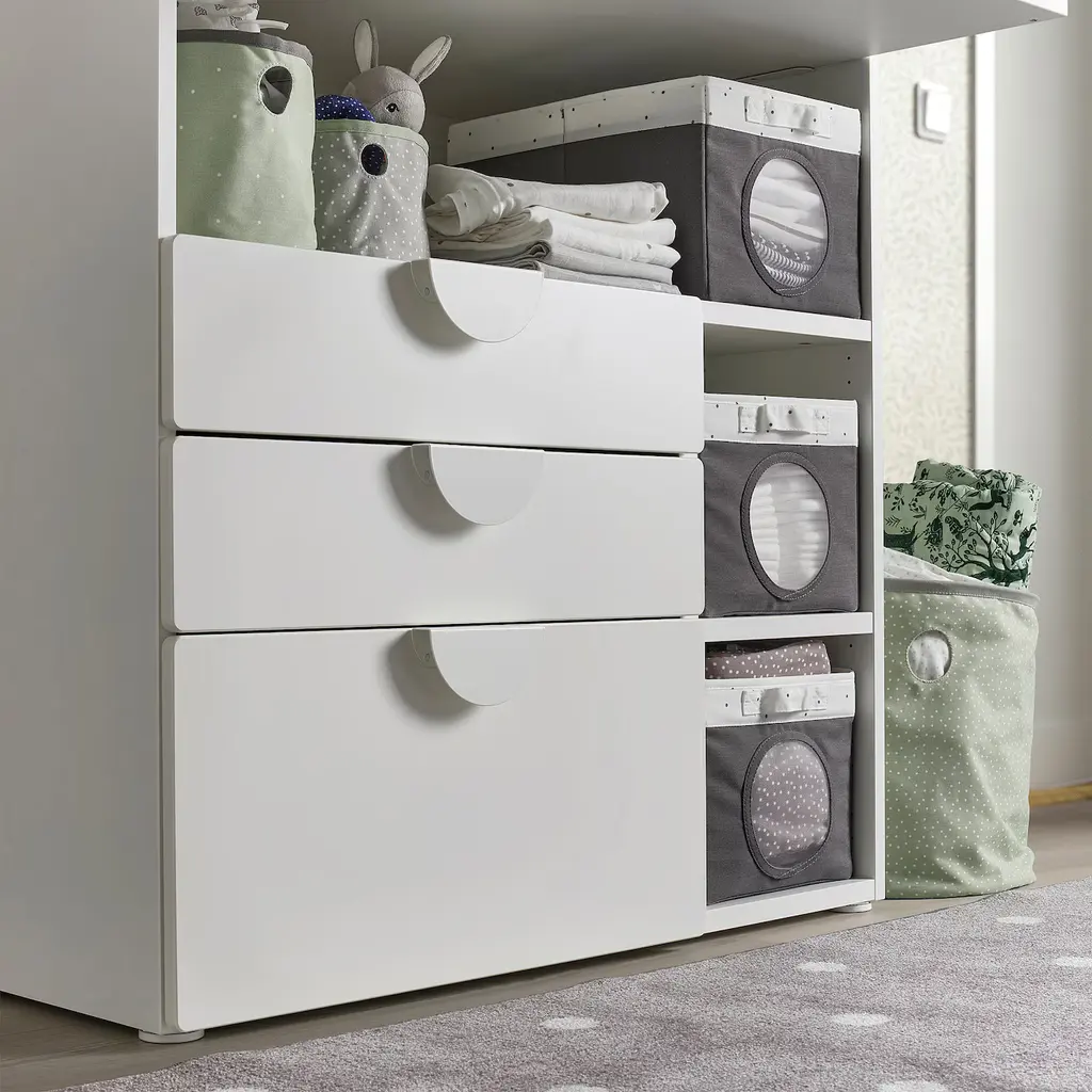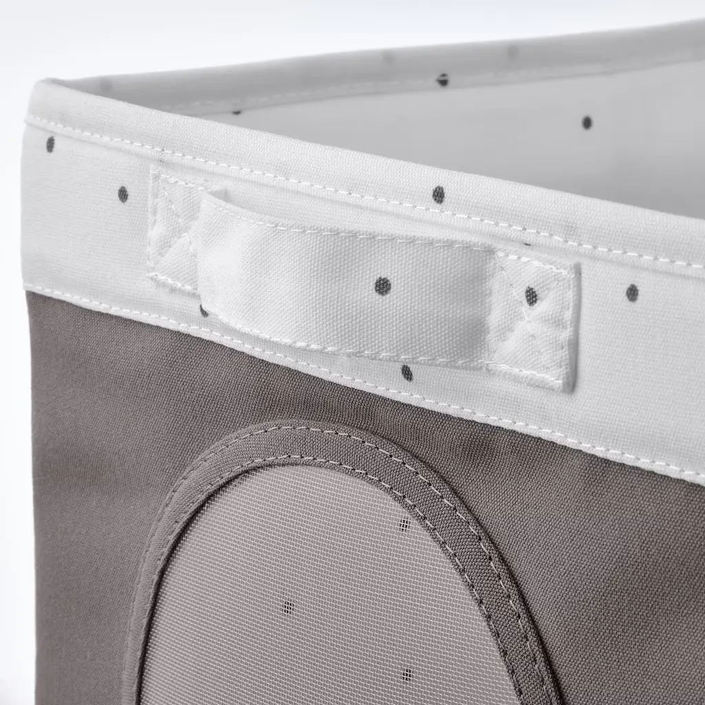 LEN Box - gray/dotted white 9 ¾x14 ½x8 ¾ ". A perfect complement to your existing storage that creates space for small things, toys or clothes – on the changing table, the floor or in a bookcase. Can be folded to save space when not in use. Recommended for children 3 years and older.
