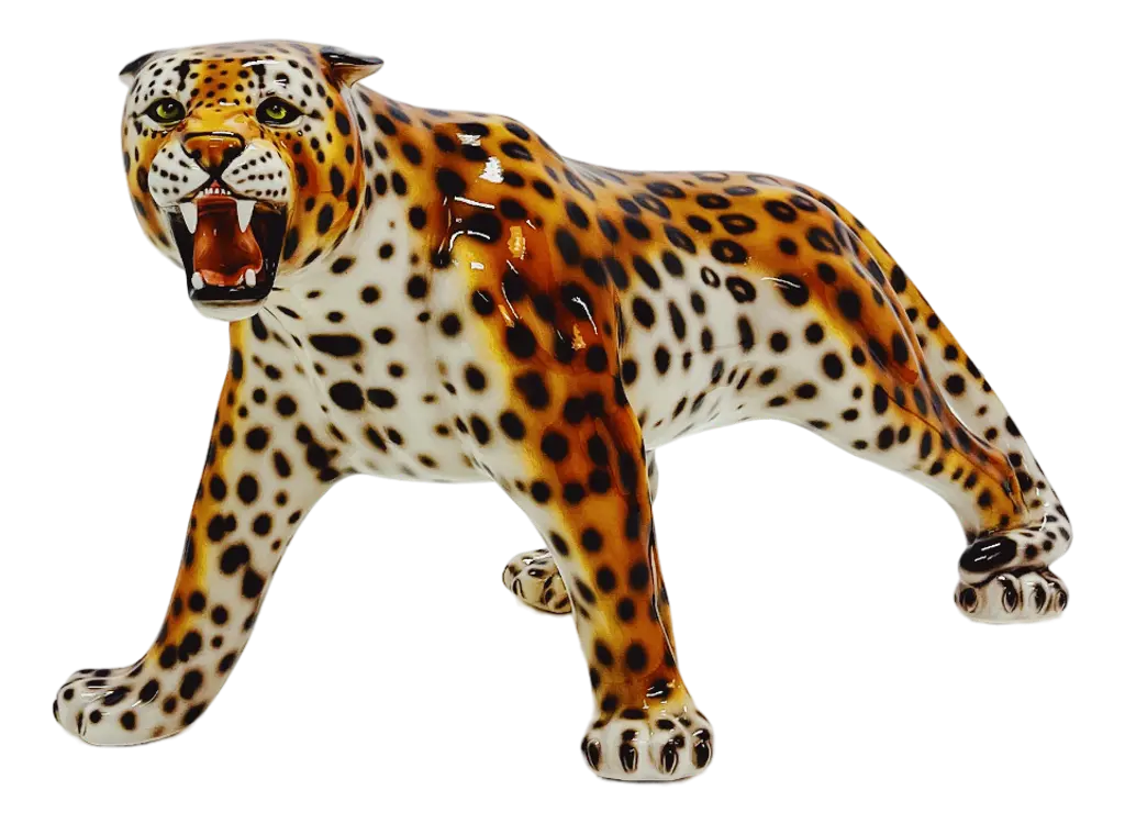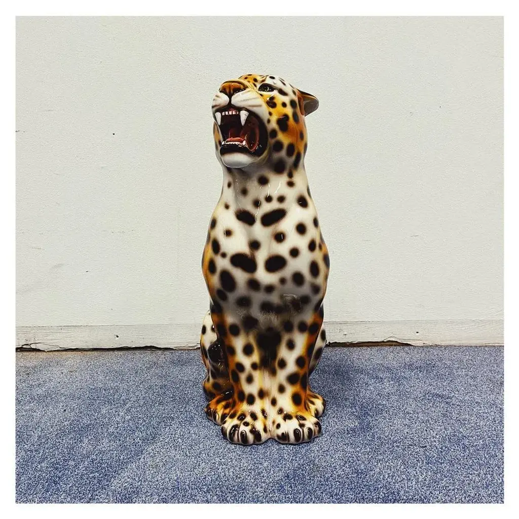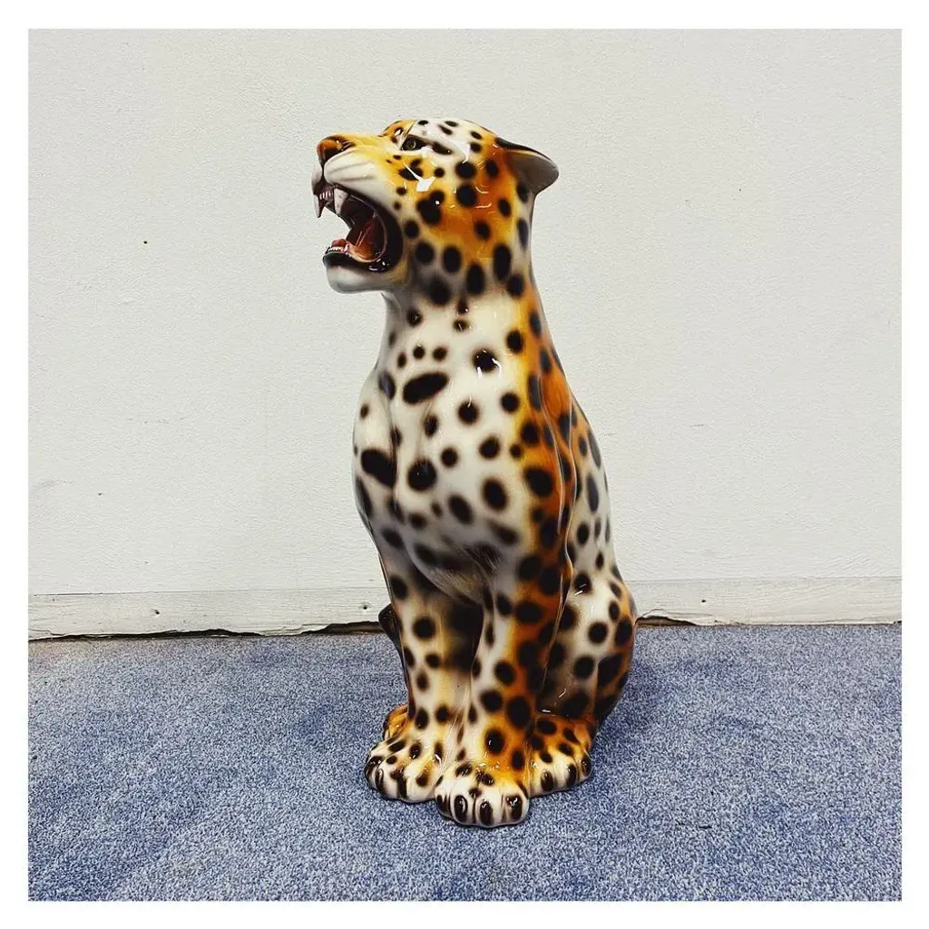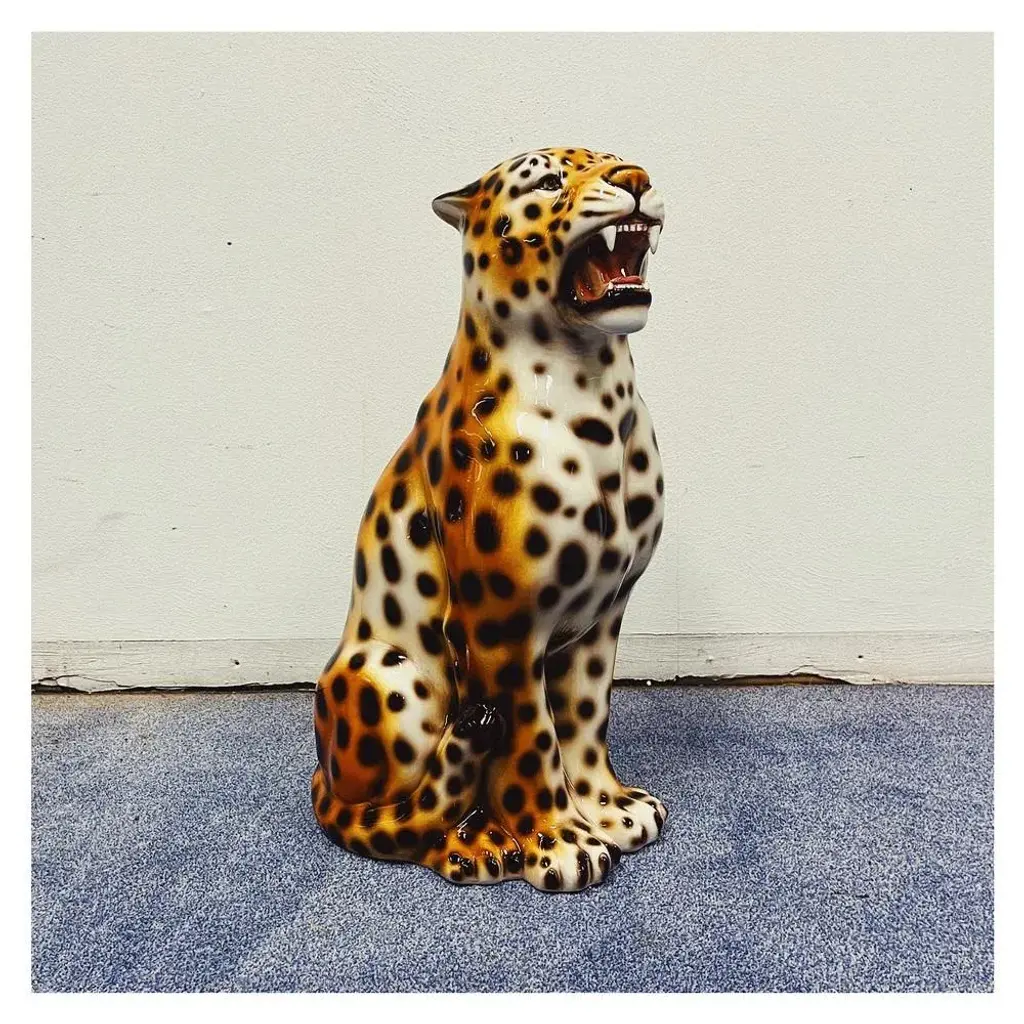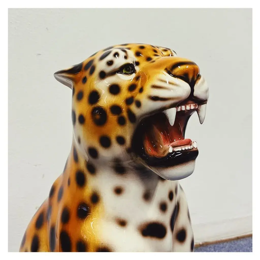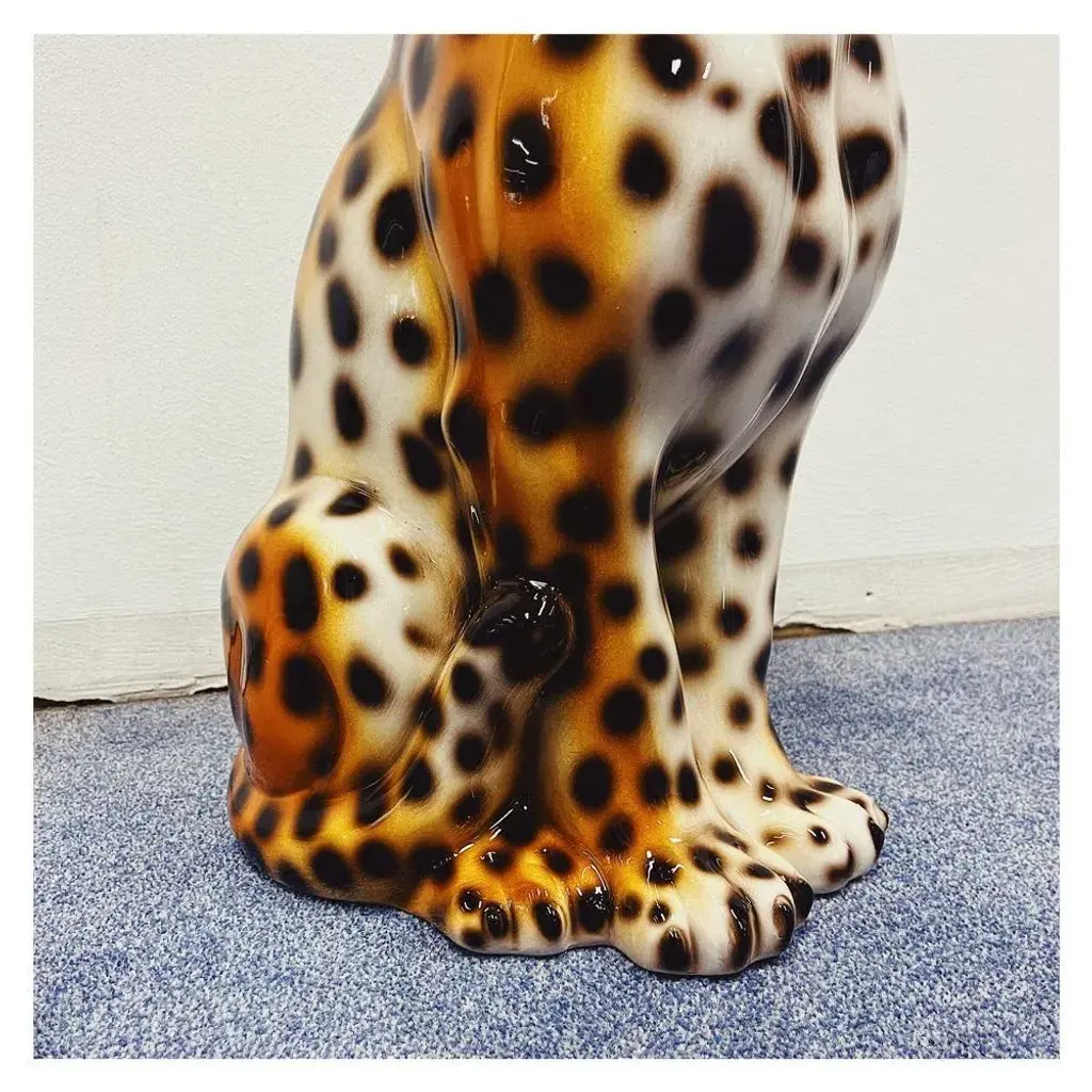 Unique handmade statue of a leopard. This Hollywood Regency statue, crafted from hand-painted ceramic and made in Italy, will undoubtedly add a stunning and sturdy look to your interior! All statues come directly from a family business in Northern Italy that has specialized in high-quality ceramic statues since 1985. Everything is made by hand, making each image unique. Dimensions Height: 58cm Stamped by Maker