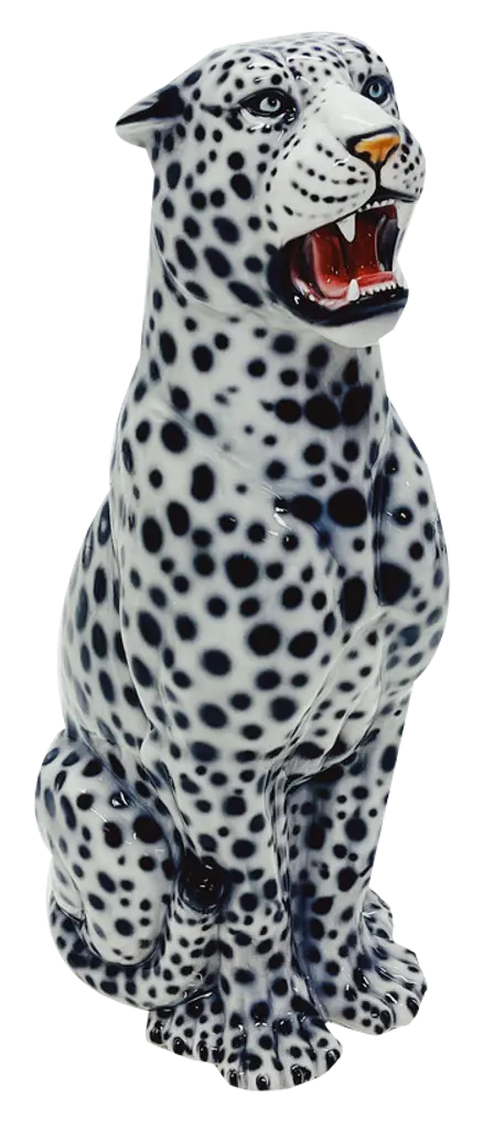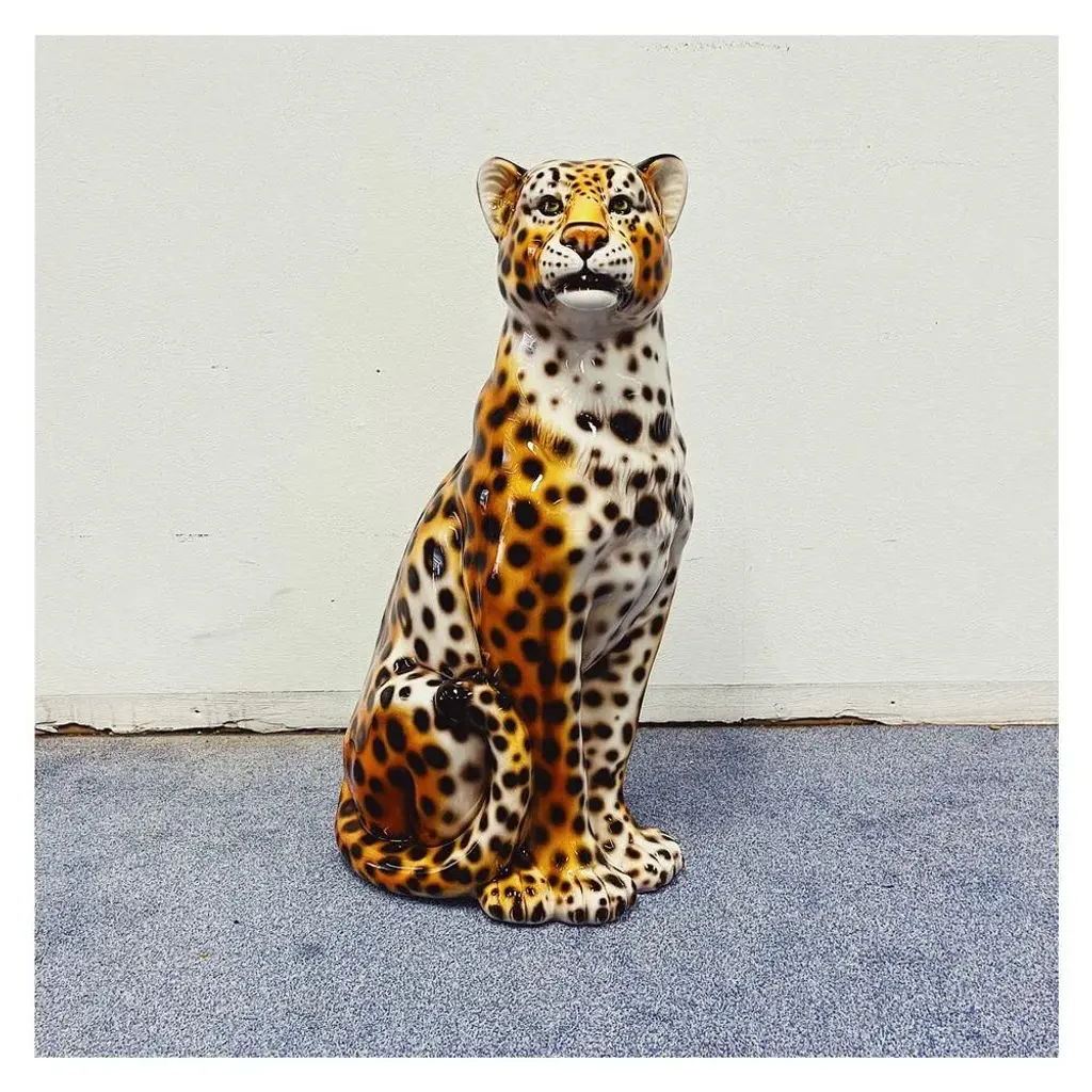 Unique handmade statue of a leopard. This Hollywood Regency statue, crafted from hand-painted ceramic and made in Italy, will undoubtedly add a stunning and sturdy look to your interior! All statues come directly from a family business in Northern Italy that has specialized in high-quality ceramic statues since 1985. Everything is made by hand, making each image unique. There are different types and sizes available, and customization is also possible. Dimensions Height: 73cm Stamped by Maker