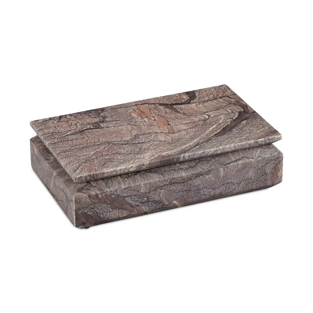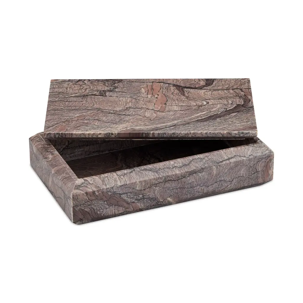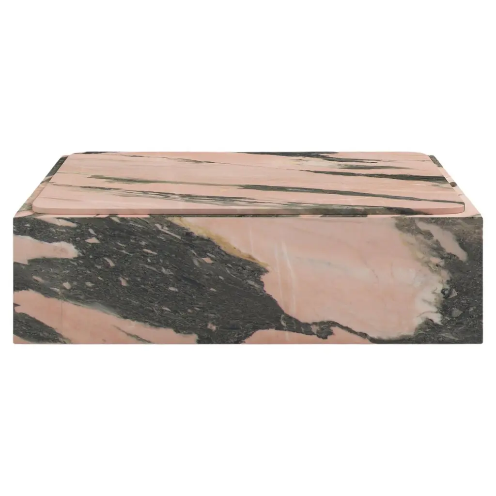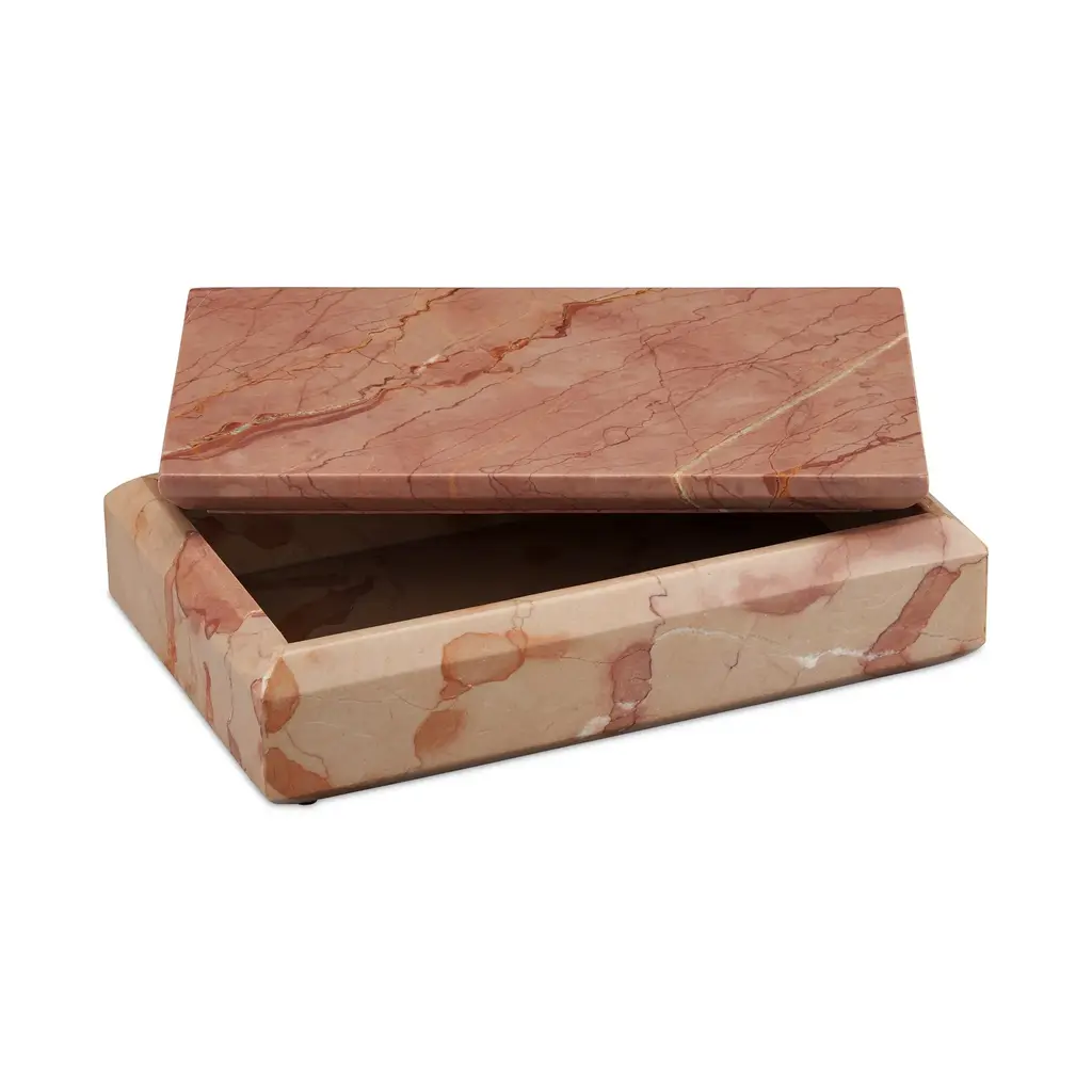 The Leslie Rosa Marble Box is made of Rosa Cappuccino Marble or Breccia Marble, which will have a tremendous level of variation on the surface from piece to piece. This lovely decorative accessory is difficult to make because the box is chamfered as it angles up to the top. Designer Aimee Kurzner continues her material exploration in boxes with this set of contemporary accessories. In Stock Late May 2026 Ships In 7-10 Business Days This image is for illustrative purposes only. The colors shown are accurate within the constraints of lighting, photography, and the color accuracy of your screen.