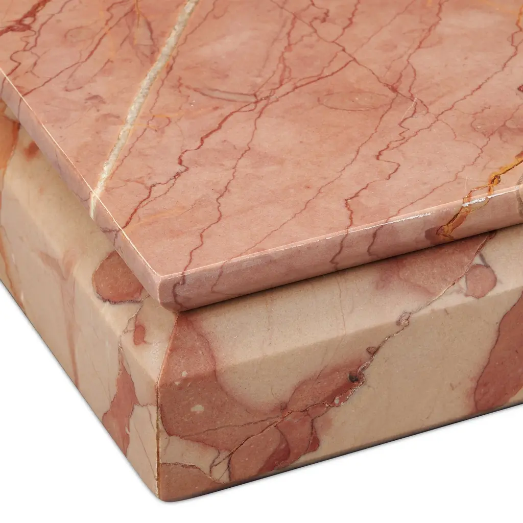 The Leslie Rosa Marble Box is made of Rosa Cappuccino Marble or Breccia Marble, which will have a tremendous level of variation on the surface from piece to piece. This lovely decorative accessory is difficult to make because the box is chamfered as it angles up to the top. Designer Aimee Kurzner continues her material exploration in boxes with this set of contemporary accessories. In Stock Late May 2026 Ships In 7-10 Business Days This image is for illustrative purposes only. The colors shown are accurate within the constraints of lighting, photography, and the color accuracy of your screen.