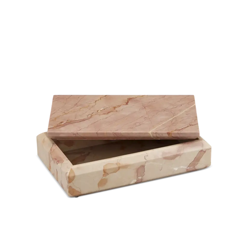 Made of natural agate, the Benoit box is a clean-lined design with a snug-fitting top in natural stone patterning. Pair it with the other Benoit box to see how they stack so beautifully.