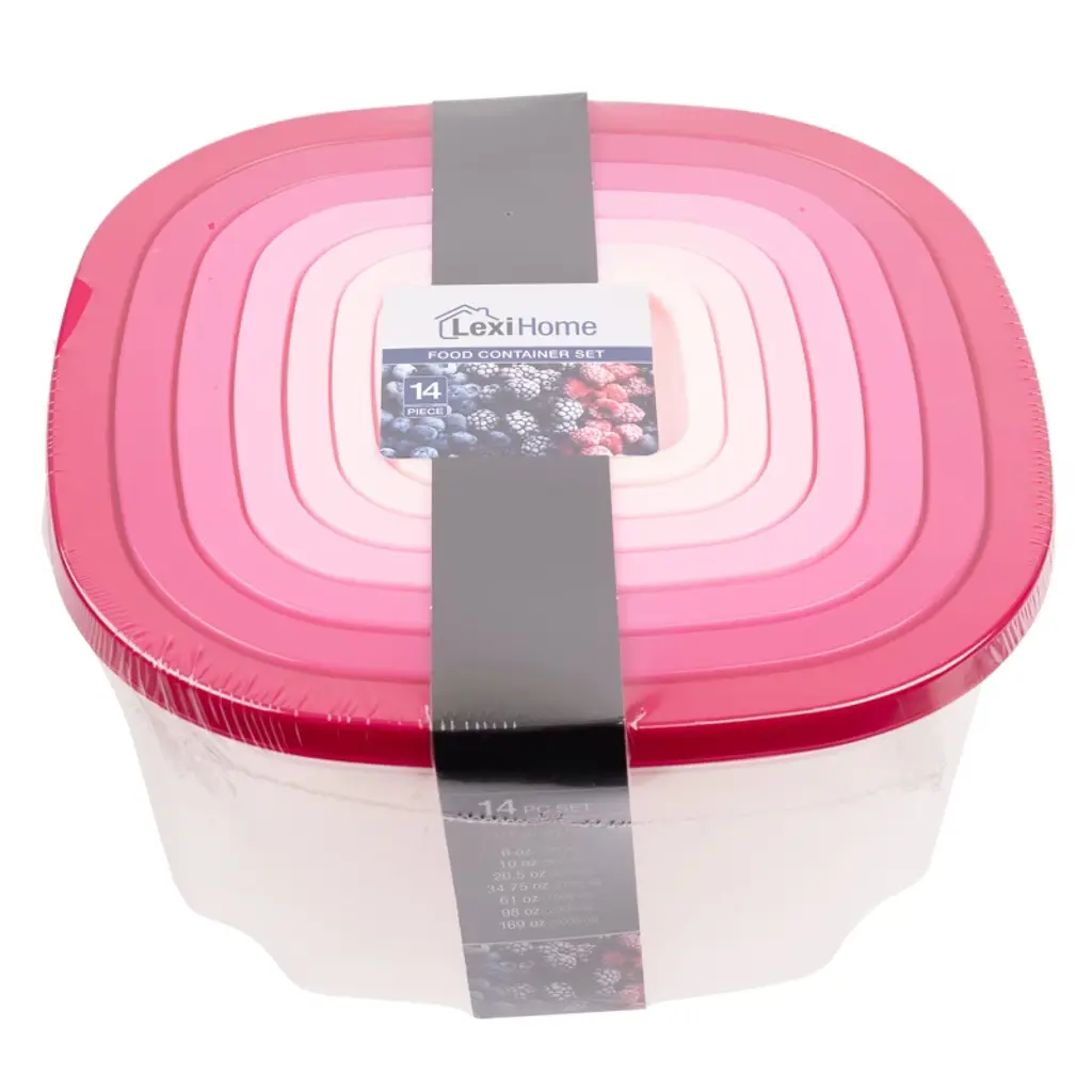 Lexi Home 14-piece Square Plastic Food Storage Container Set In Gradient Pink