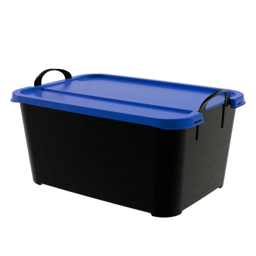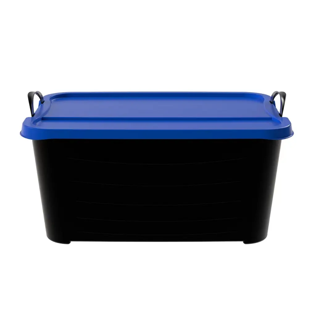 Life Story Stackable Storage Bin, 55 Quart Home Organizer, Lightweight Locking Bins With Carrying Handles, Black/blue, 6 Pack