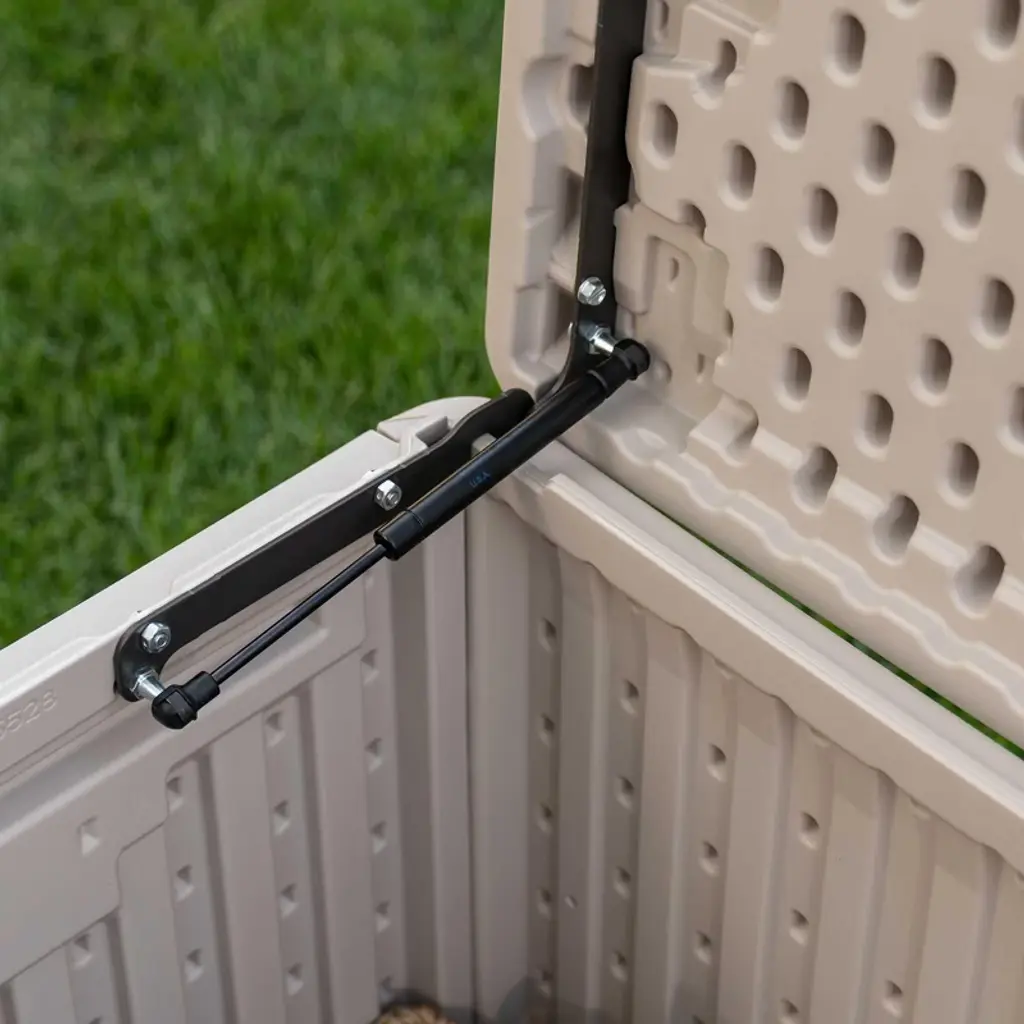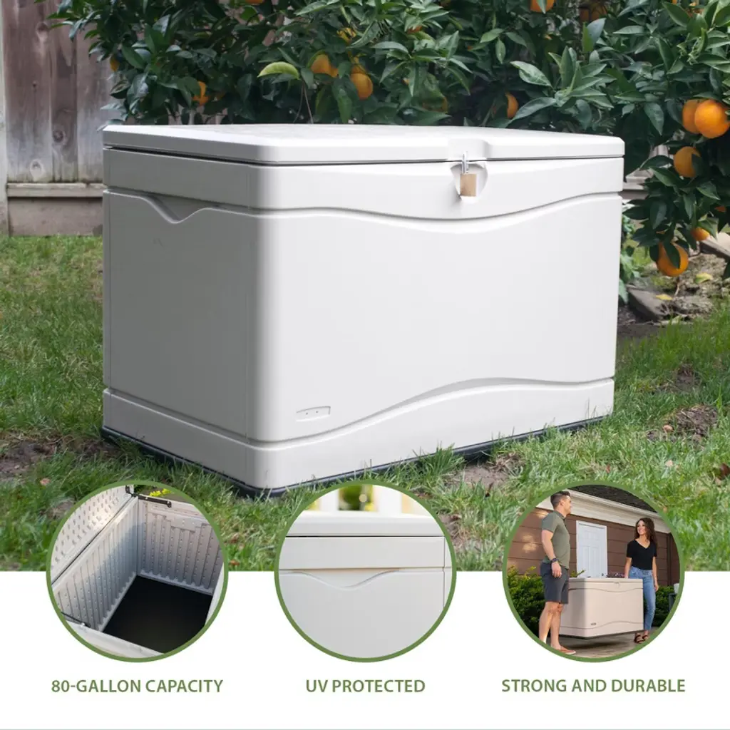Need a more convenient place to store items around your yard? Lifetime’s 80 Gallon Capacity Deck Boxes are the perfect way to expand your storage and get better access to items you use regularly around your yard. Whether you have gardening tools, lawn equipment, yard games, or even outdoor seat cushions, the Deck Box makes them easy to store and find when needed. It is durable, UV-protected, and weather resistant to ensure your belongings have years of protection. The lid is lockable (lock not included) to provide even greater security and has a controlled spring-hinge for easy opening and closing. It has molded side handles for easy transport making it easy to move around your yard or patio and it is even sturdy enough to be used as a bench. The Lifetime Deck Box blends durability, convenience and style to create a versatile storage solution.