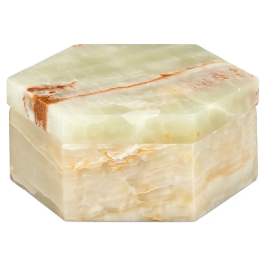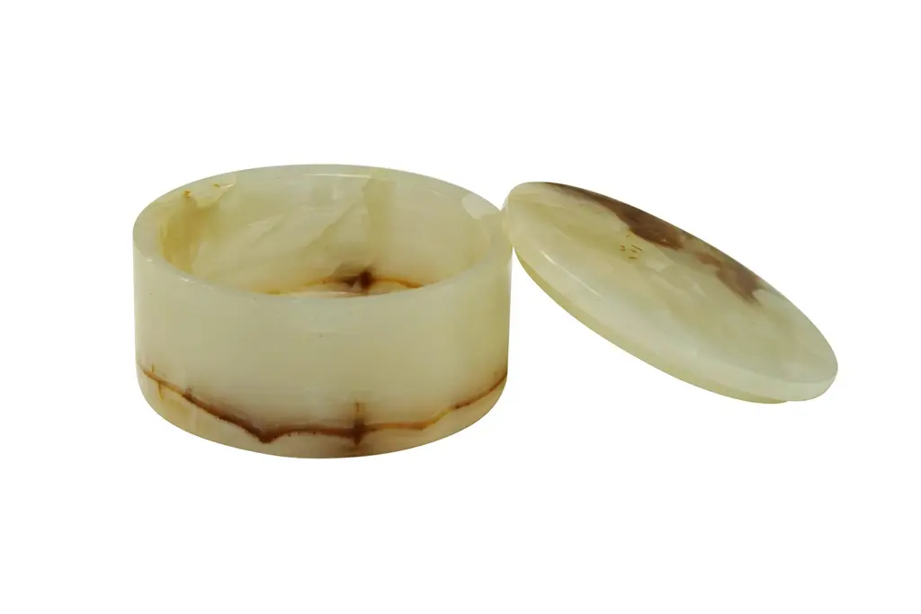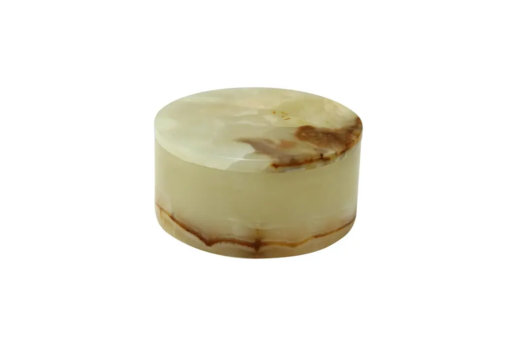 A Eirenne Collection Light Green Onyx 5" Circular Keepsake Box.