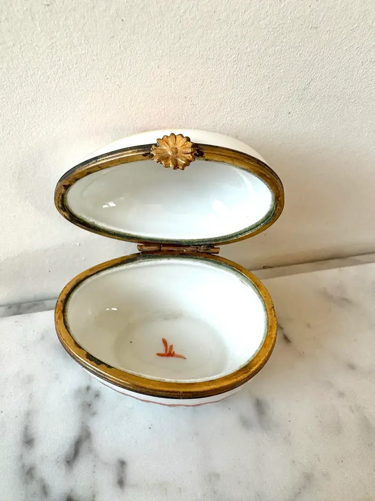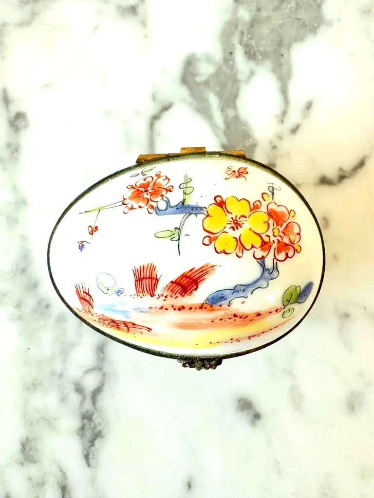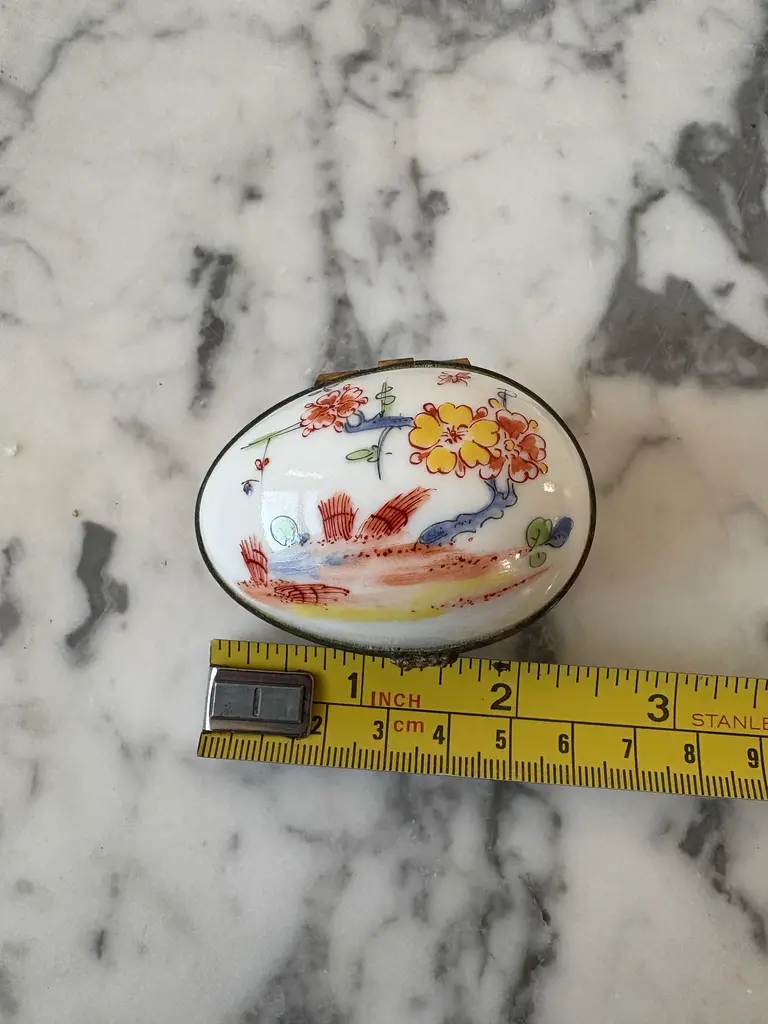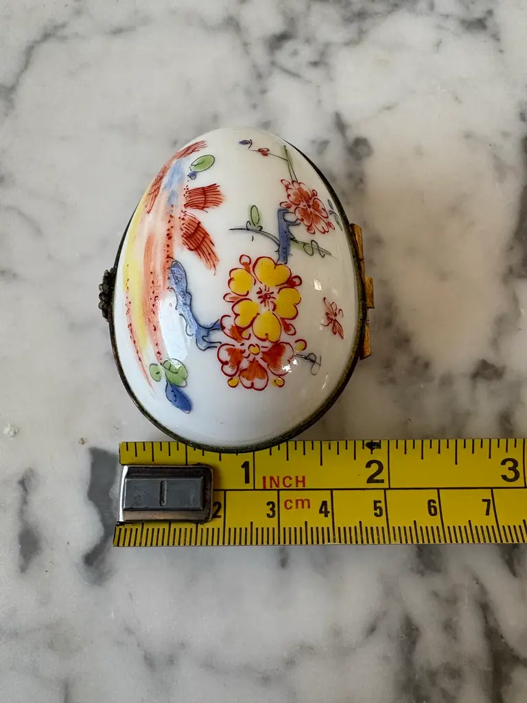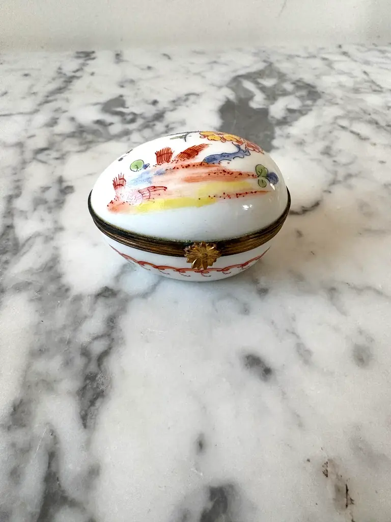 Lovely vintage Limoges France hand painted porcelain egg pill box. Made in France.