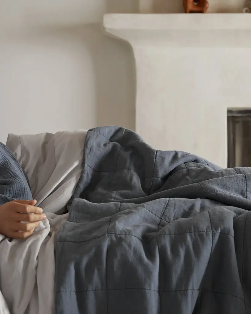 Our modern take on the classic quilt, this box pattern blanket has a medium weight that's ideal forlayering.