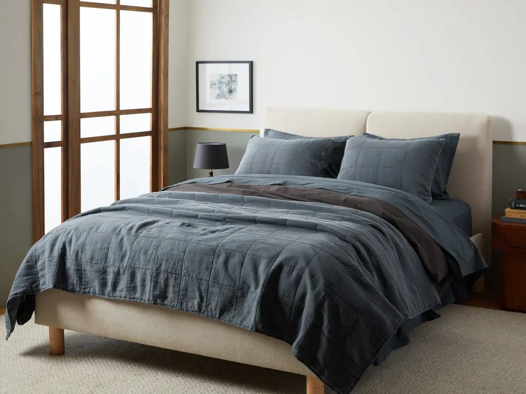 A set of two decorative quilted shams for a minimalist finishingtouch.