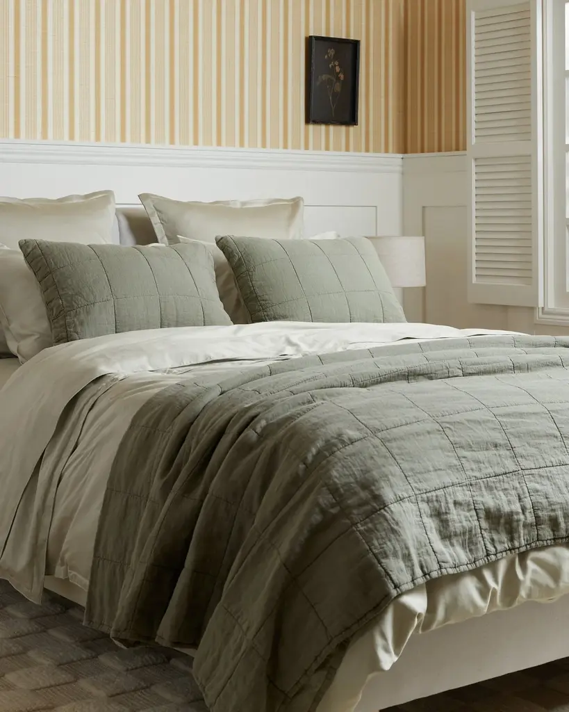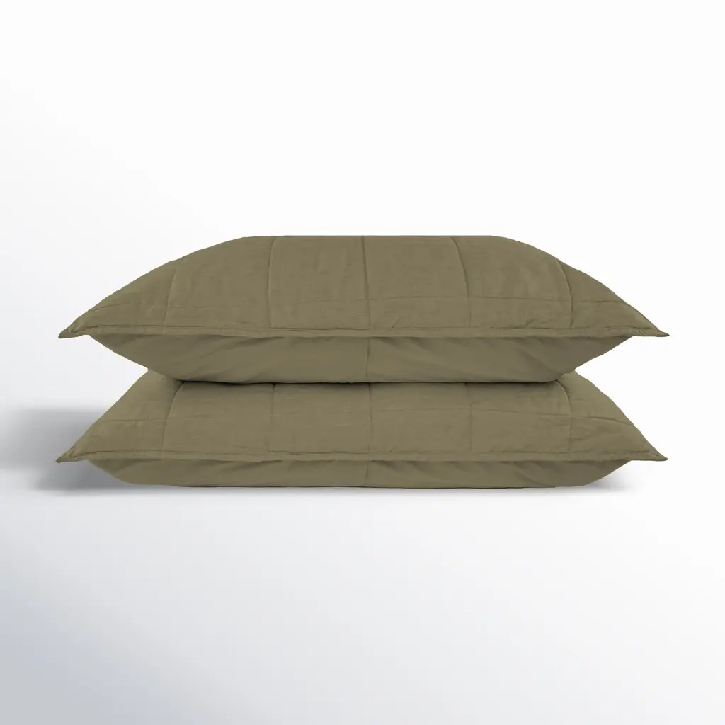 Linen Box Quilted Sham Set (Moss)
