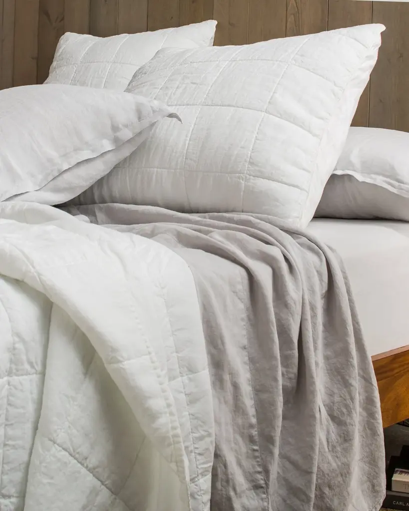 Linen Box Quilted Sham Set (White)