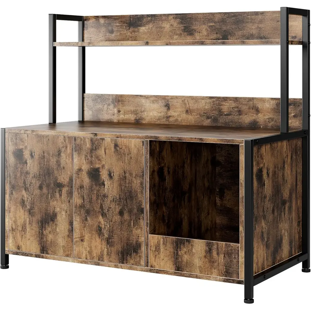 Litter Box Enclosure,cat Litter Box Furniture With Removable Divider, Large Hidden Litter Box Furniture, Wooden Cat House - Brown