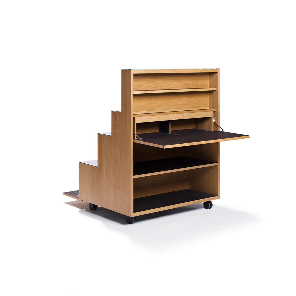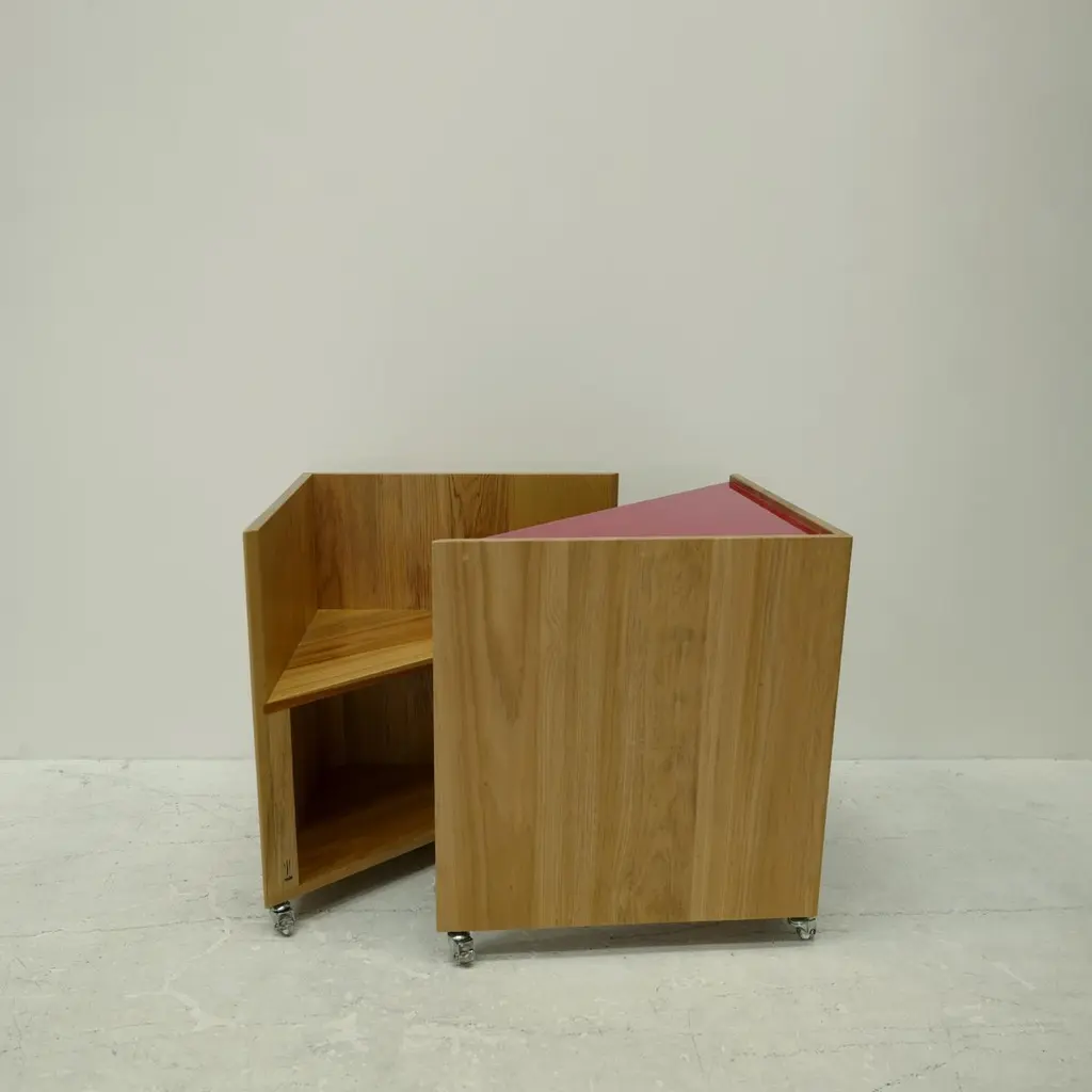 Design:Lina Bo Bardi, Marcelo Ferraz, André VainerMaterial:Solid Pine, Melamine laminate, with castersDesigned by Lina Bo Baldi in 1986, this children's desk was created for installation in the SESC Pompeia Cultural Center, a cultural facility in the São Paulo Pompei area. The design was a collaboration between Lina Bo Bardi, Marcelo Fejas, and Andre Vayner. In 2023, CASA DE, in cooperation with Marcelo Fejas / Fondazione Lina Bo Baldi / Studio Balauna, reissued it for the first time in the world. For the SESC Pompeia Cultural Center project, Lina designed not only the building, but also the furniture, the staff uniforms, graphics, and everything else.