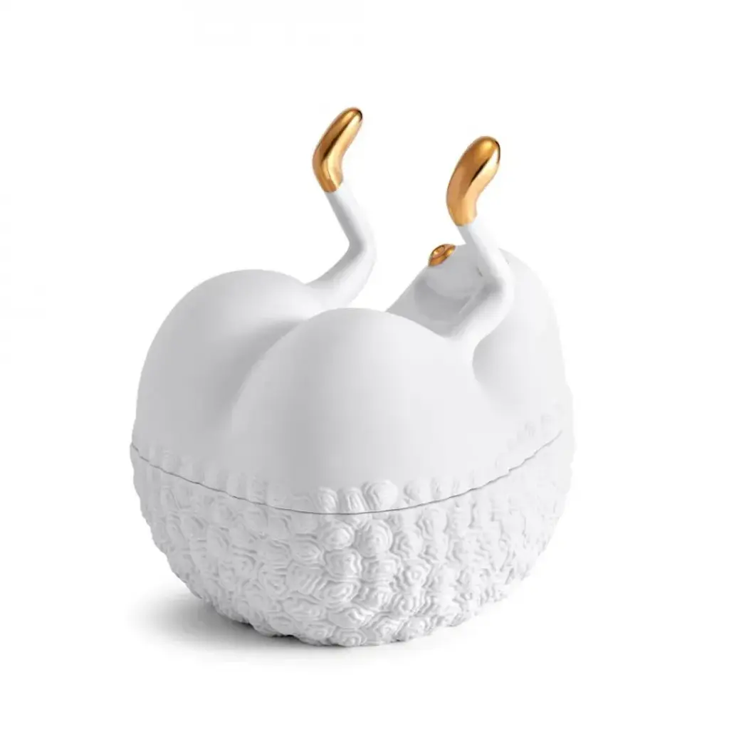 L'objet + Haas Butts Up Box White + Gold 6.5 X 5.25 X 6.25" - 17 X 13 X 16cm