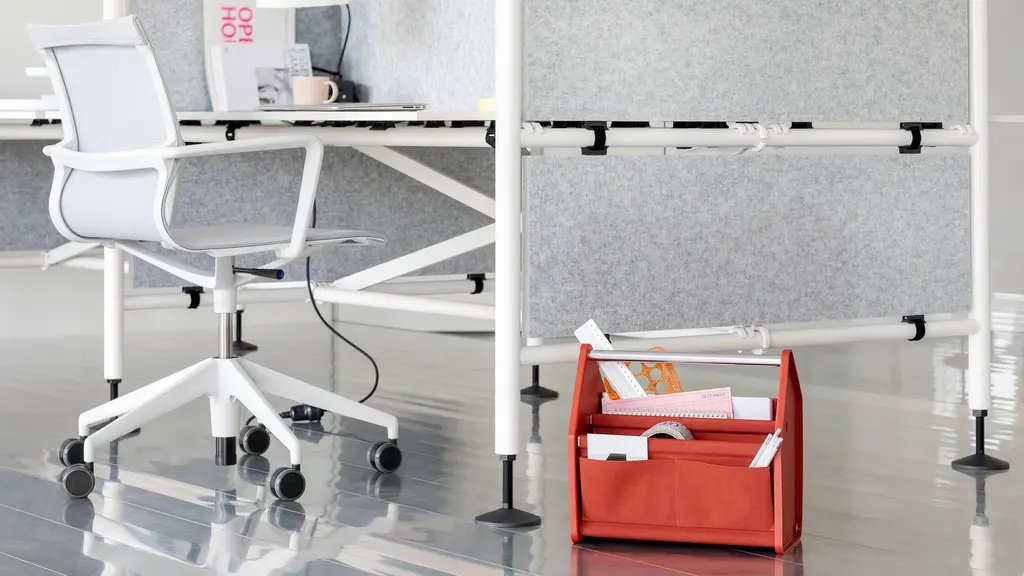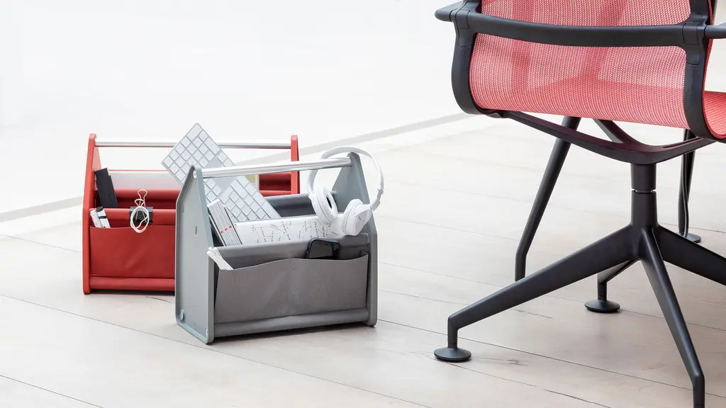Lightweight and easy to handle, the small Locker Box supports agile work routines in the office and when working from home. Thanks to this practical portable caddy, work utensils such as laptop, keyboard, papers, pens, cables, hard drives, headphones etc. are always at hand and can be simply stored away at the end of the day.In addition to the small Locker Box, which is especially compact, two larger versions are also available – Locker Box and Drop Box. All three models come in a variety of colours.