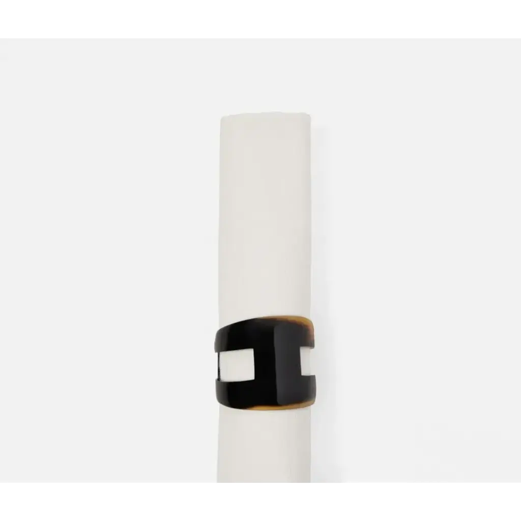 Luna Black/white Horn Napkin Ring, Boxed Set Of 4