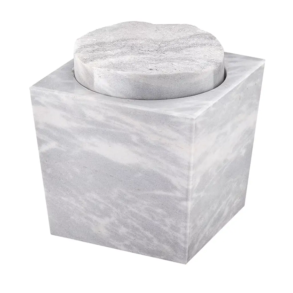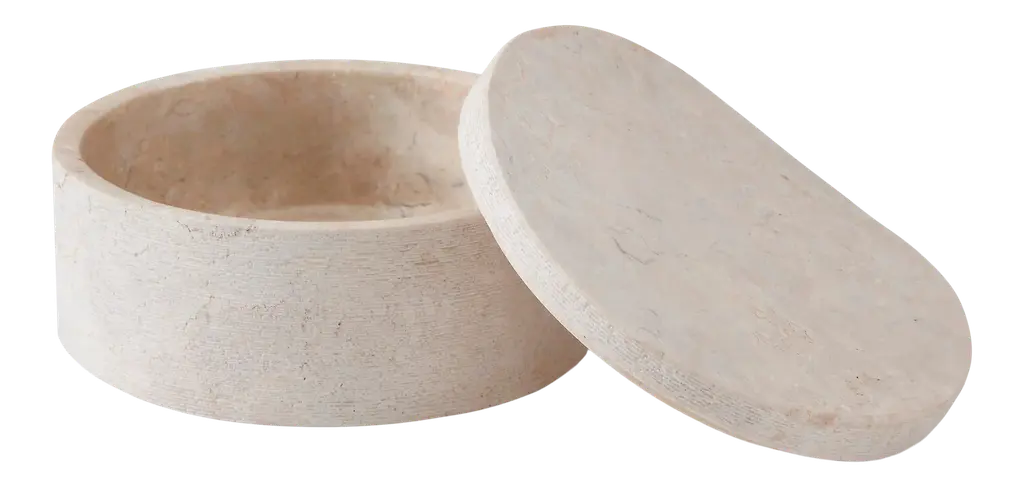 This unique piece of small box is decorative and functional. It evokes the phases of the moon as it is opened and closed. The lid and the container allow the stratifications of sedimentation to emerge from the lines of the stone, which come together each time it is closed. design: Andrea Scotton Palissandro marble classico.