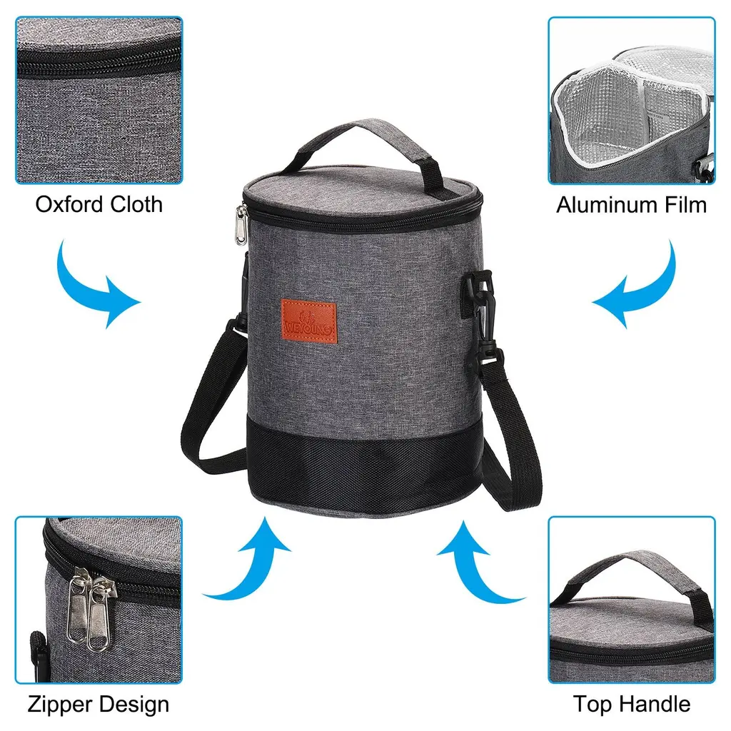 Our insulated lunch box can be used in offices, picnics, camping trips, travel, or any other outdoor activities. You can pack a variety of foods and drinks, including sandwiches, salads, fruits, and more. It is great for keeping your lunch fresh and delicious, no matter where you are.SpecificationColor: Black GreyMaterial: Oxford Cloth, Pearl Cotton, Insulation Aluminum FilmSize: 23.5cm x 18cm x 18cm / 9.3 inch x 7.1 inch x 7.1 Inch(H*W*L)Packing List: 1 x Insulated Lunch BagAdvantageOur lunch box has a spacious design and provides enough space to fit all of your lunch items. It is made with advanced insulation technology, which keeps your food for hours. The handle design is for easy carrying. It is lightweight and foldable, without taking up too much space. It is made with quality materials that are sturdy, reusable, and easy to clean. InstructionPack your favorite foods and drinks into the lunch box and close the lunch box securely. Make sure all closures are properly fastened to prevent spills and leaks. When you are ready to eat, simply open the lunch box and enjoy your fresh and delicious meal.NOTE: After use, wipe down the lunch box with a damp cloth or sponge to clean off any spills or dirt. Let it air dry before storing it away.
