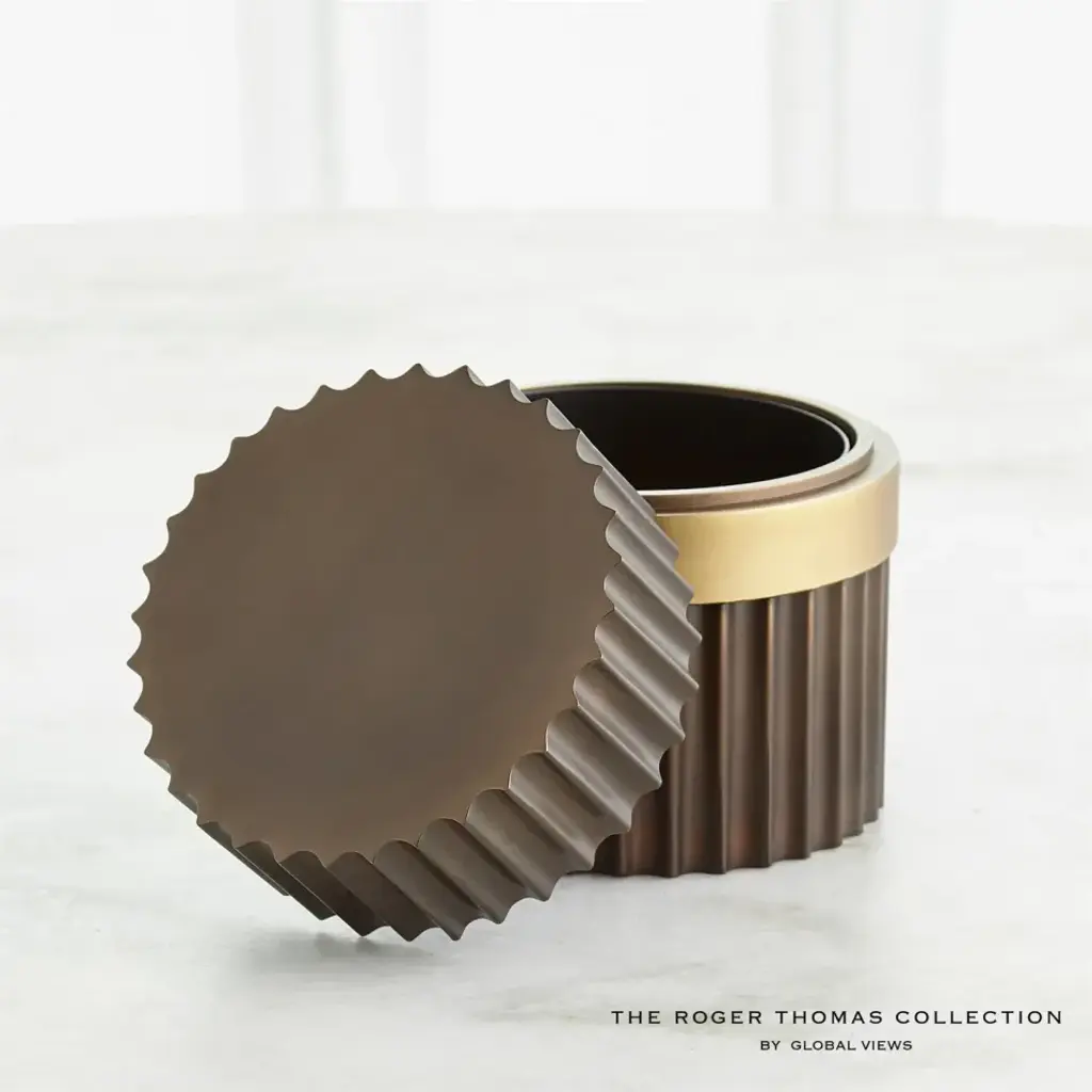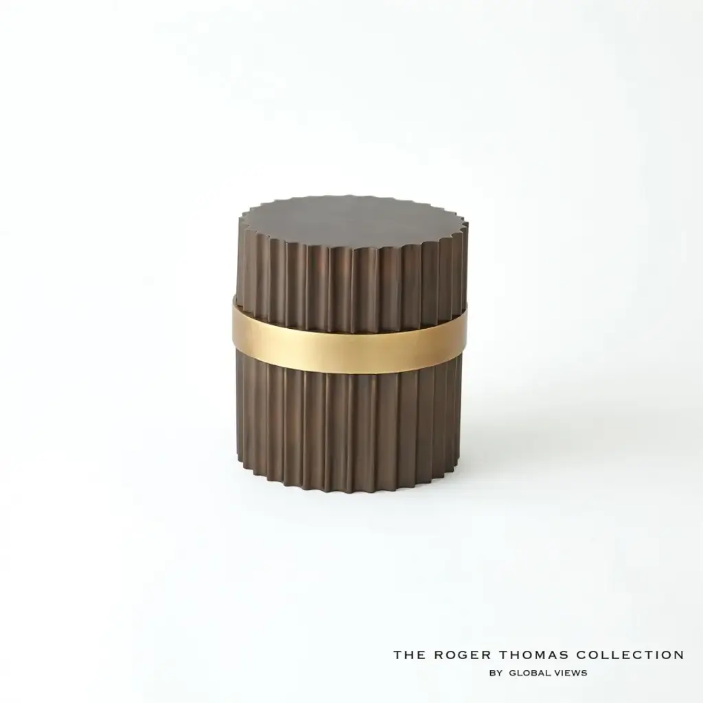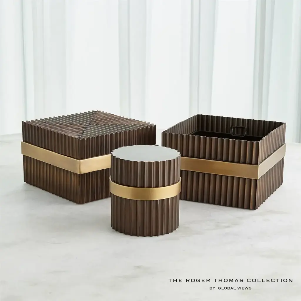 Representing Thomas enchantment with the simplest innovation for the cylindrical form, fluted column shafts referenced in the Magic Flute Collection are a hallmark of the apotheosis of Classic Greek architecture and then of the Neoclassical reinvention of Renaissance and late 18th-century French design. Made of brass and steel, each finished in bronze with brass detailing, this collection consists of two boxes, a cachepot, and candle holders. From a fashion forward perspective, Global Views offers accessories, furniture, statement lighting, and an assortment of rugs and mirrors to add beauty and joy to your home.