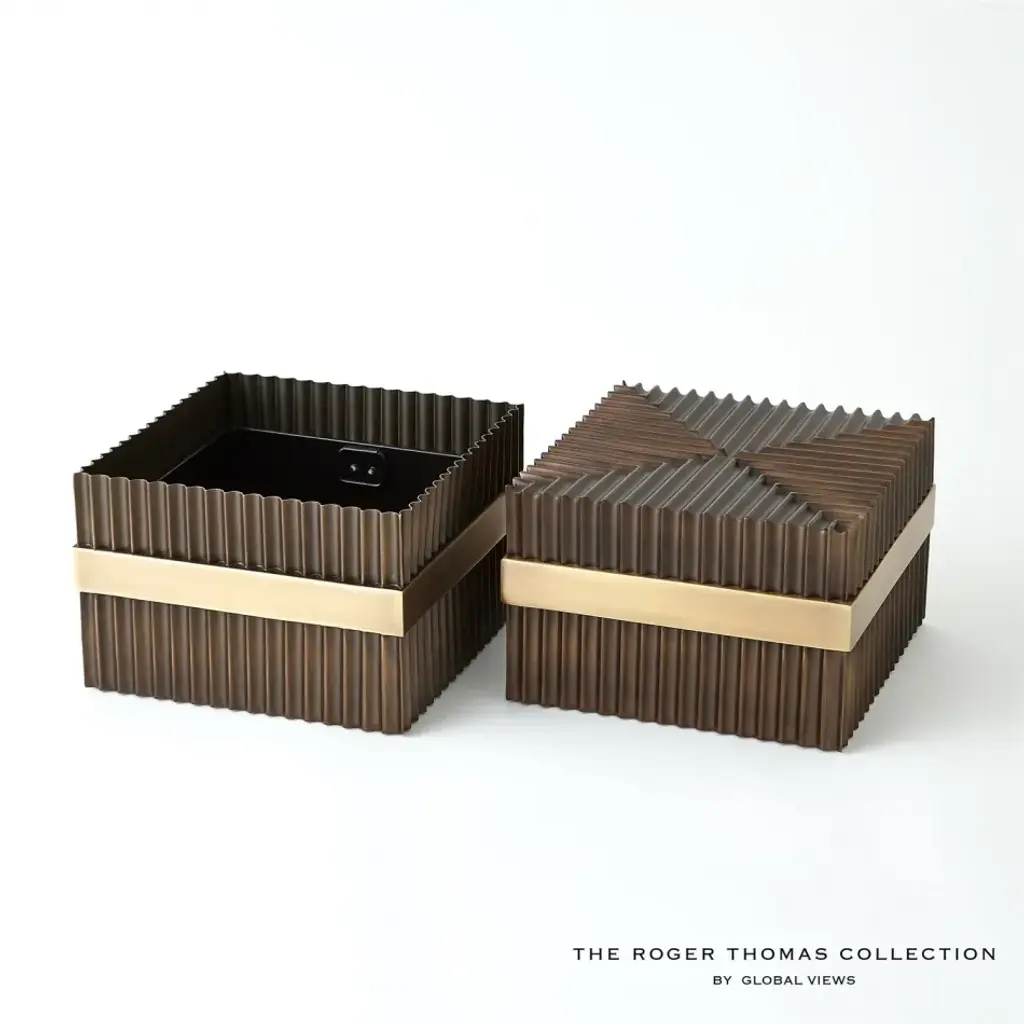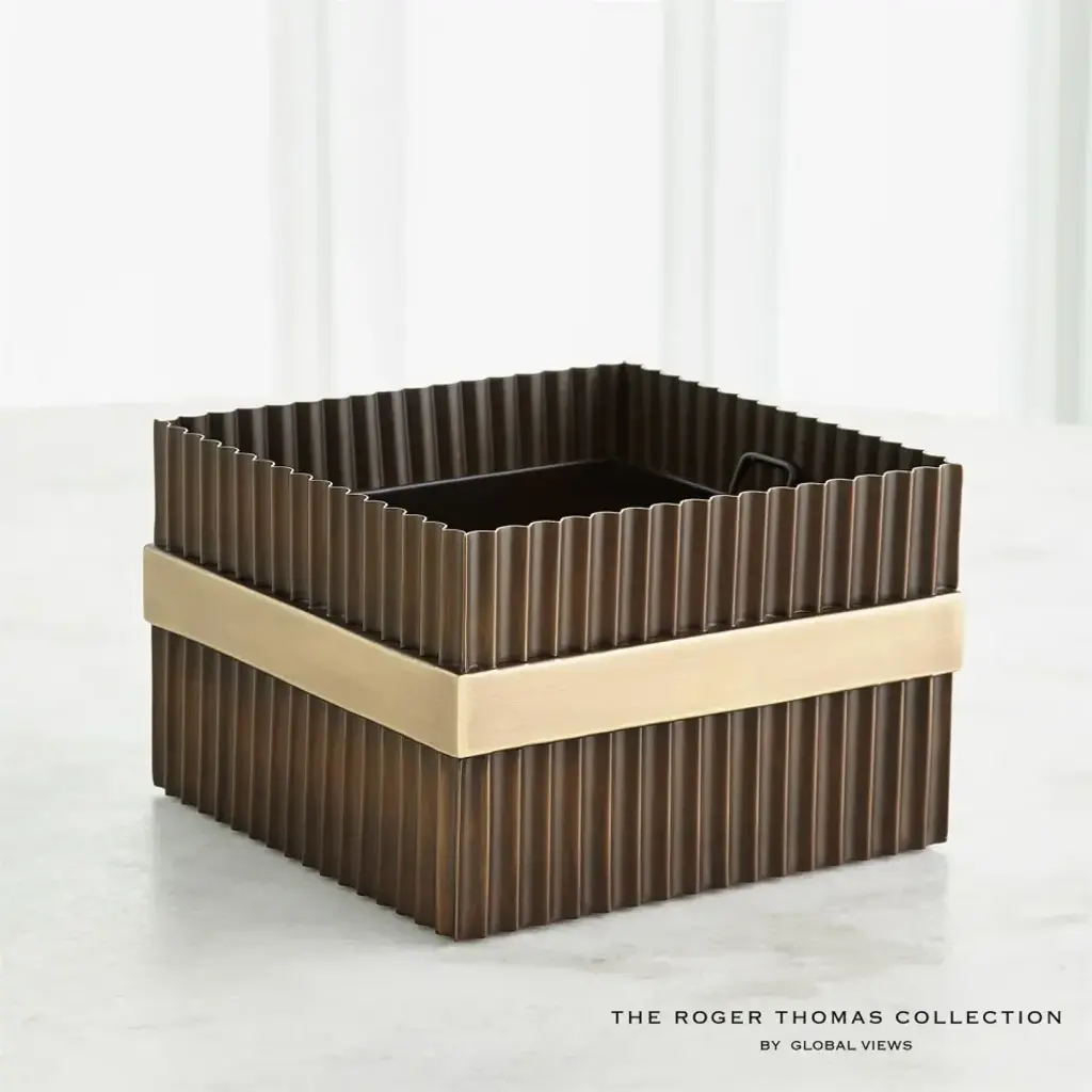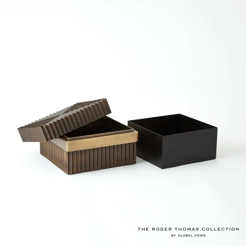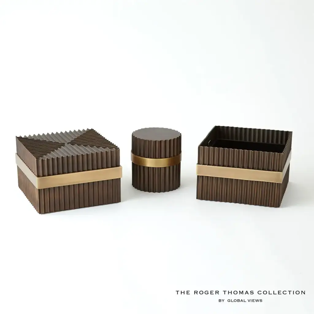 Representing Thomas enchantment with the simplest innovation for the cylindrical form, fluted column shafts referenced in the Magic Flute Collection are a hallmark of the apotheosis of Classic Greek architecture and then of the Neoclassical reinvention of Renaissance and late 18th-century French design. Made of brass and steel, each finished in bronze with brass detailing, this collection consists of two boxes, a cachepot, and candle holders. From a fashion forward perspective, Global Views offers accessories, furniture, statement lighting, and an assortment of rugs and mirrors to add beauty and joy to your home.