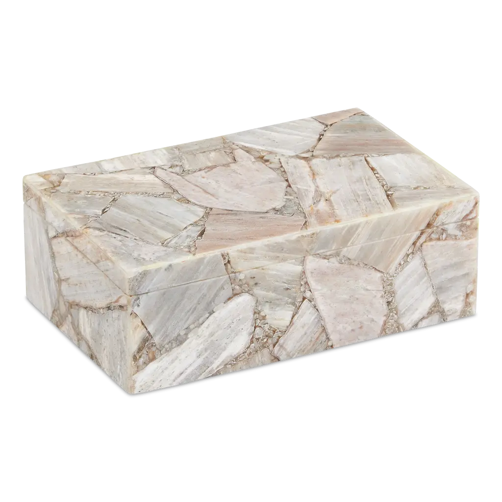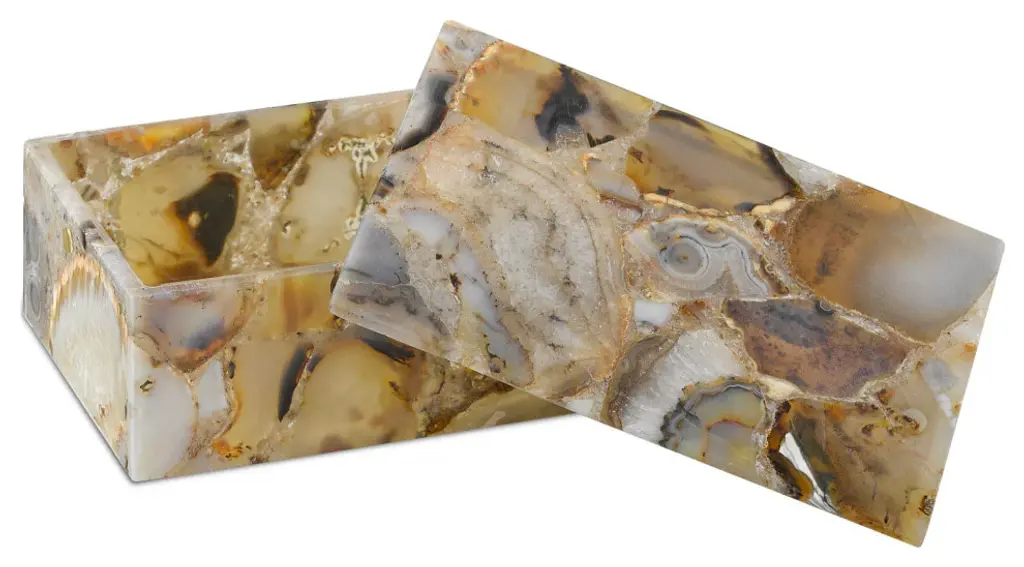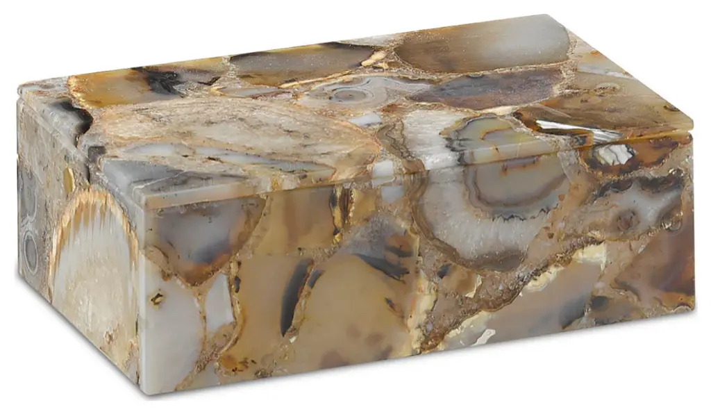 Made of black agate, the Malaga Small Box is a clean-lined design with a snug fitting top in natural stone patterning. Pair the decorative agate box with the Malaga Large Box to see how they stack so beautifully.